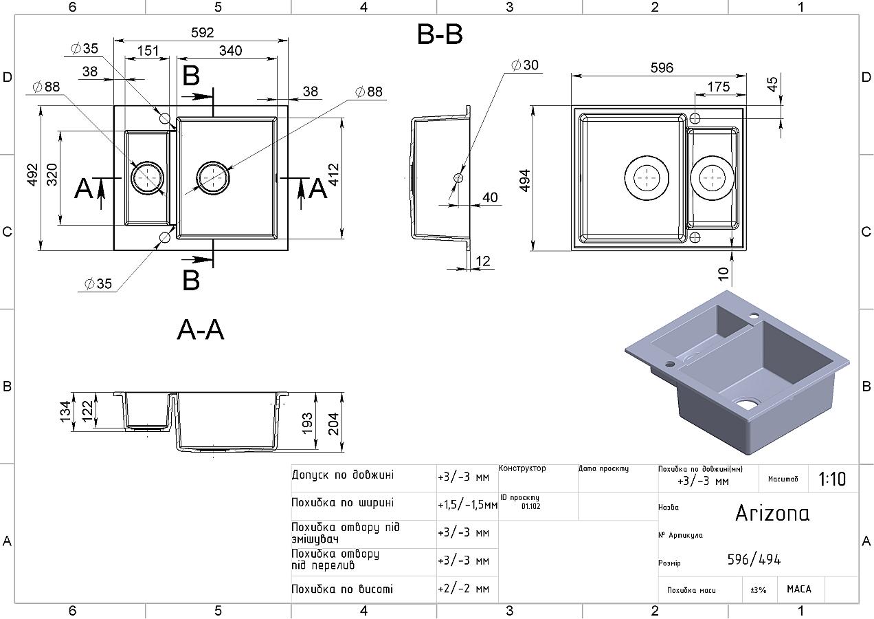 Характеристики Кухонна мийка ARIZONA WHITE з 2 отворами під змішувач