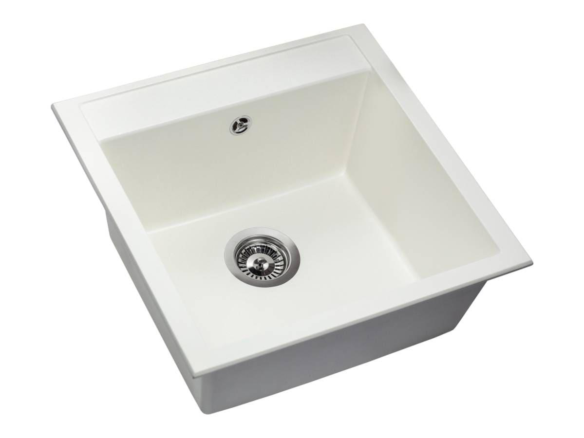 Квадратна біла кухонна мийка з кварцового піску BODRUM 510 стане чудовим вибором для вашої кухні. Ця класична модель без крил має одну глибоку чашу. Дизайн моделі дозволяє вдало інтегрувати її практично у більшість сучасних кухонних гарнітурів. Мийка має врізний тип монтажу.