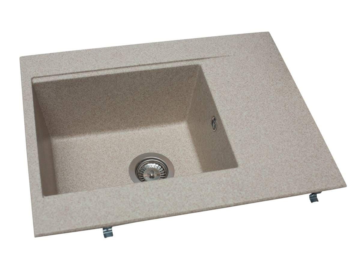 Прямокутна кухонна мийка із кварцового піску BODRUM 650 пісочного кольору прикрасить вашу кухню та зробить її комфортнішою. Ця модель має одну глибоку чашу та додаткове місце для сушіння посуду. Дизайн та колір моделі дозволяє вдало інтегрувати її практично у більшість сучасних кухонних гарнітурів. Мийка має врізний тип монтажу.