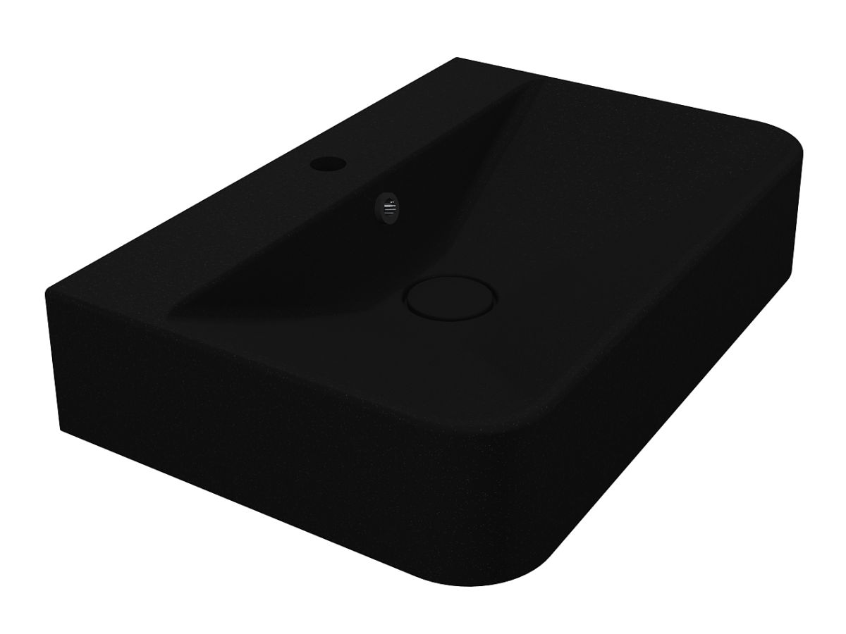 Прямокутний чорний умивальник з кварцового піску CHAMONIX із витонченою граненою трапецеподібною чашею нагадує ложе дорогоцінного каменю. Раковина має кілька способів монтажу - накладний та підвісний. Підберіть варіант відповідно до дизайна ванної кімнати. Отвір під злив прихований декоративною накладкою.