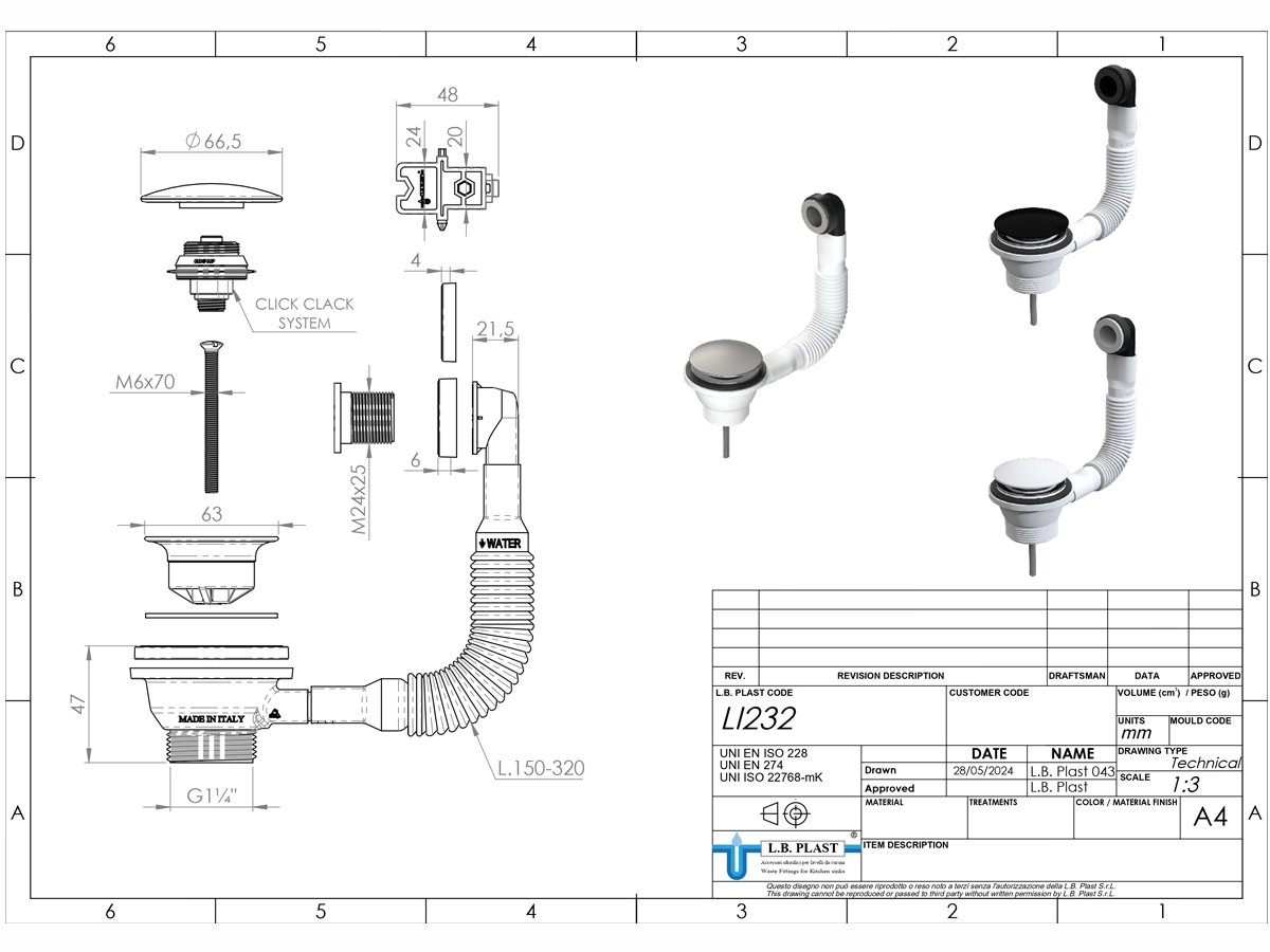 Модель LI232-NS виготовлена у чорному кольорі з матовим фінішем. Механізм Click-Clack легко відкривається і закривається одним натисканням, що дозволяє швидко перекривати або відводити воду. Не потрібно використовувати додаткові зусилля або інструменти для керування клапаном. Клапан із функцією переливу запобігає переповненню умивальника водою, автоматично відводячи надлишок у каналізацію.
