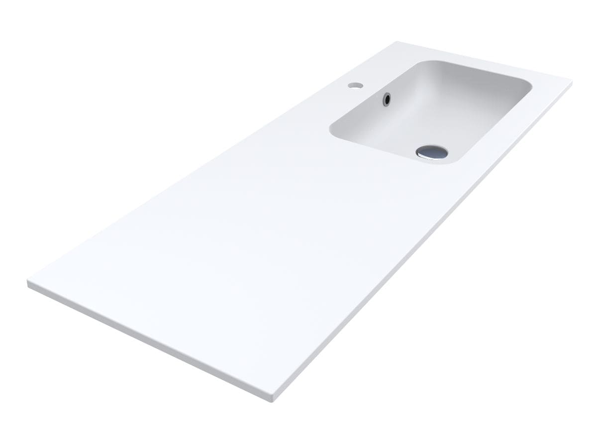 Умивальник з крилом ліворуч DELLA 1200 R MIRASOFT - оригінальне та комфортне рішення, якщо Ви переважно користуєтеся лівою рукою! Прямокутна чаша зміщена праворуч, що дозволяє розташувати під крилом пральну машину або тумбу. Раковина має отвір під змішувач та перелив. Умивальник може бути встановлений накладним методом на тумбу або врізаний у полицю.