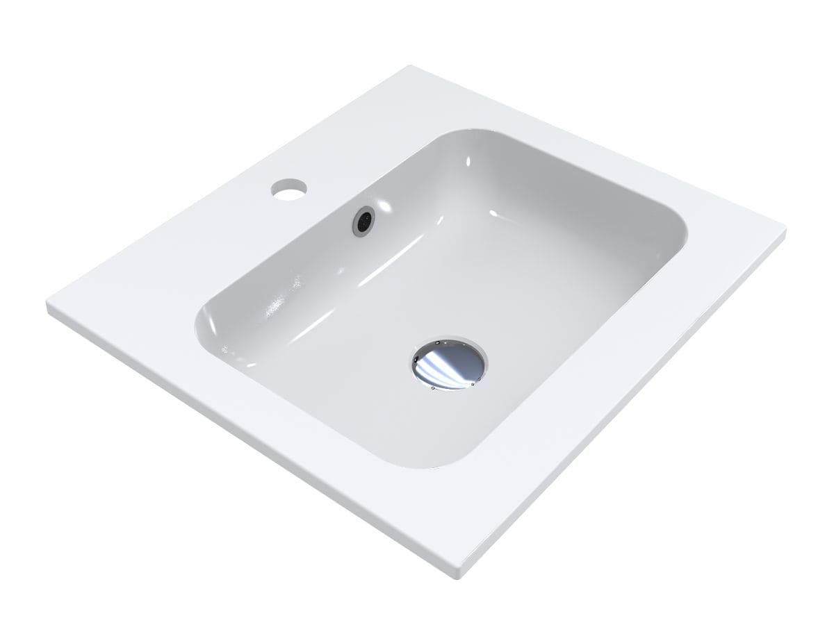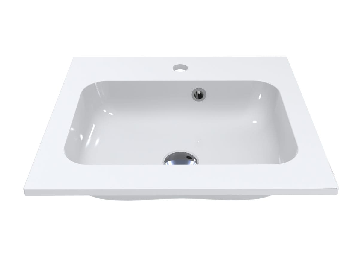 Компактний умивальник із литого мармуру DELLA 500 із практично квадратною чашею - оптимальне рішення для маленької ванної кімнати. Має отвори під змішувач та перелив. Раковина може бути накладена на тумбу, що також передбачає врізний спосіб монтажу.