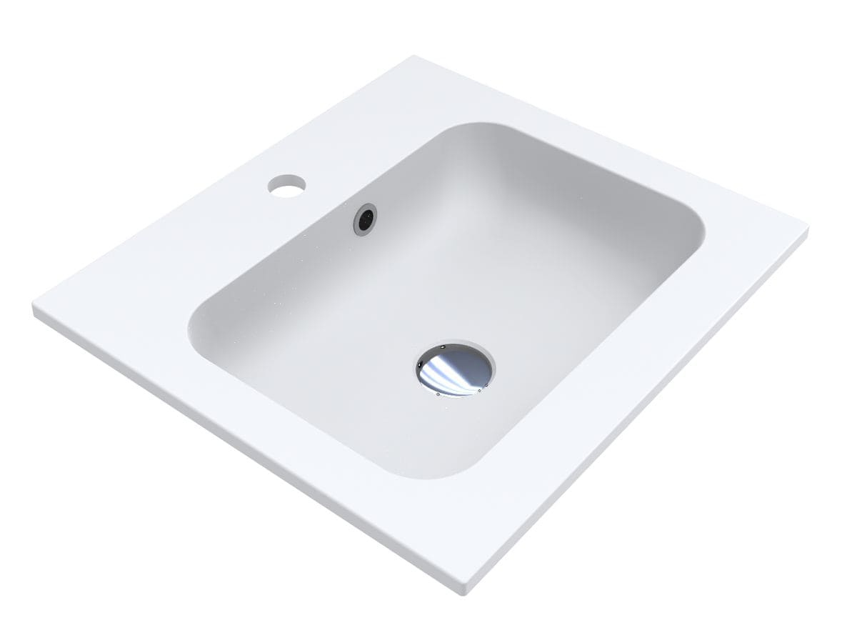 Заводський стандарт моделі DELLA 500 передбачає отвори під змішувач та перелив. Опціонально можна замовити умивальник з одним із них або зовсім без отворів. Додатково донний клік-клак можна замовити на сайті.