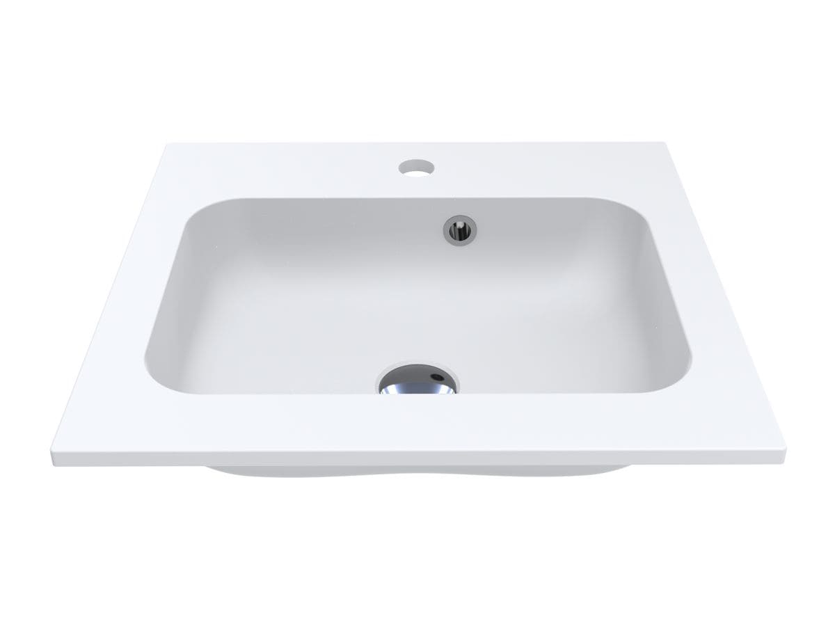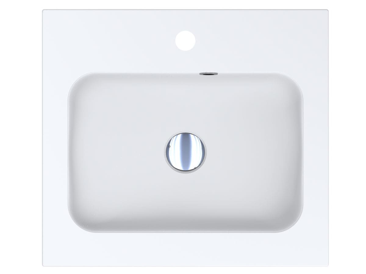 Компактний матовий умивальник DELLA 500 MIRASOFT із майже квадратною чашею - оптимальне рішення для маленької ванної кімнати. Має отвори під змішувач та перелив. Раковина може бути накладена на тумбу, що також передбачає врізний спосіб монтажу.