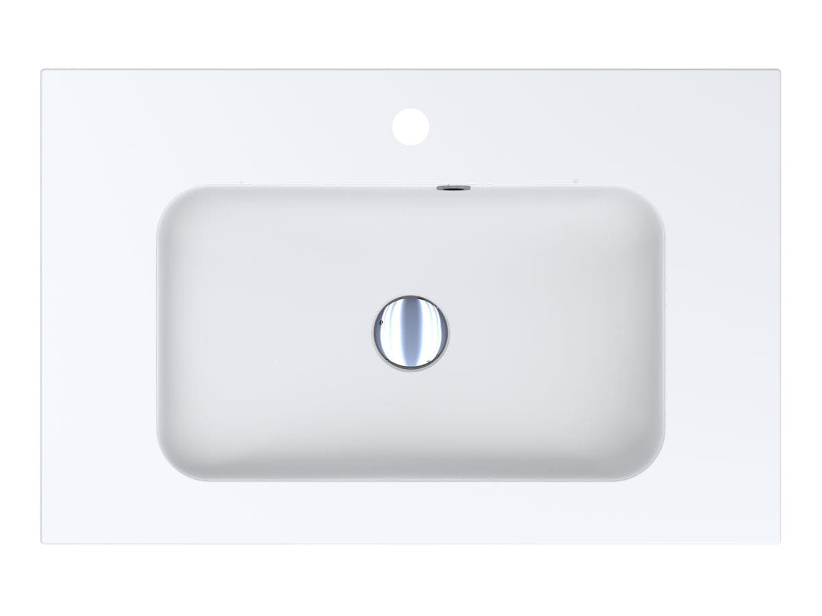 Матовий компактний умивальник DELLA 700 MIRASOFT із прямокутною чашею та акуратними крилами - оптимальне рішення для маленької ванної кімнати. Має отвори під змішувач та перелив. Раковина може бути накладена на тумбу, що також передбачає врізний спосіб монтажу.