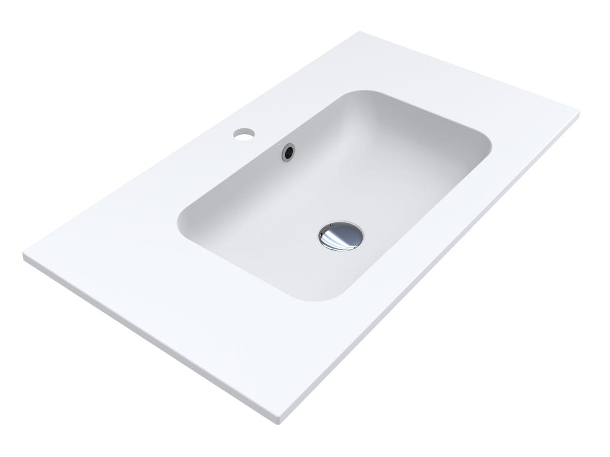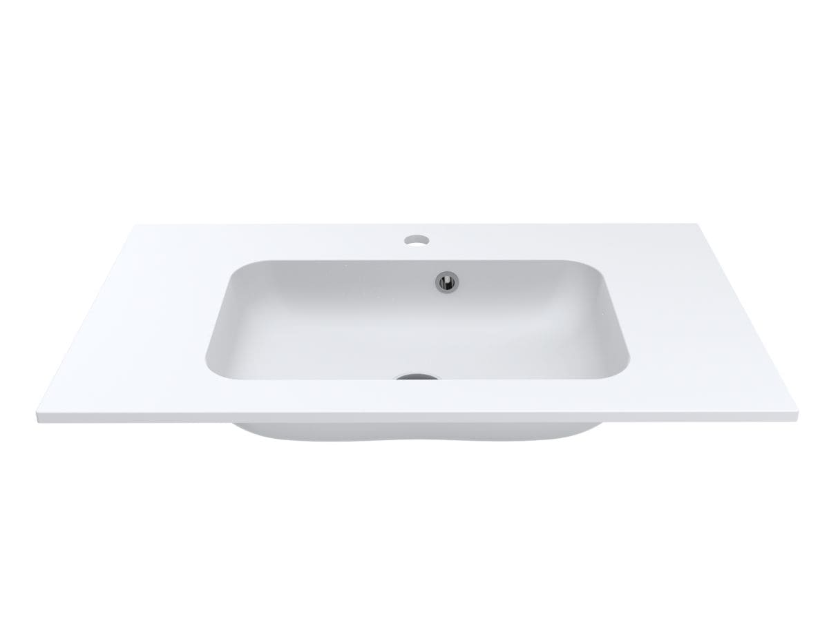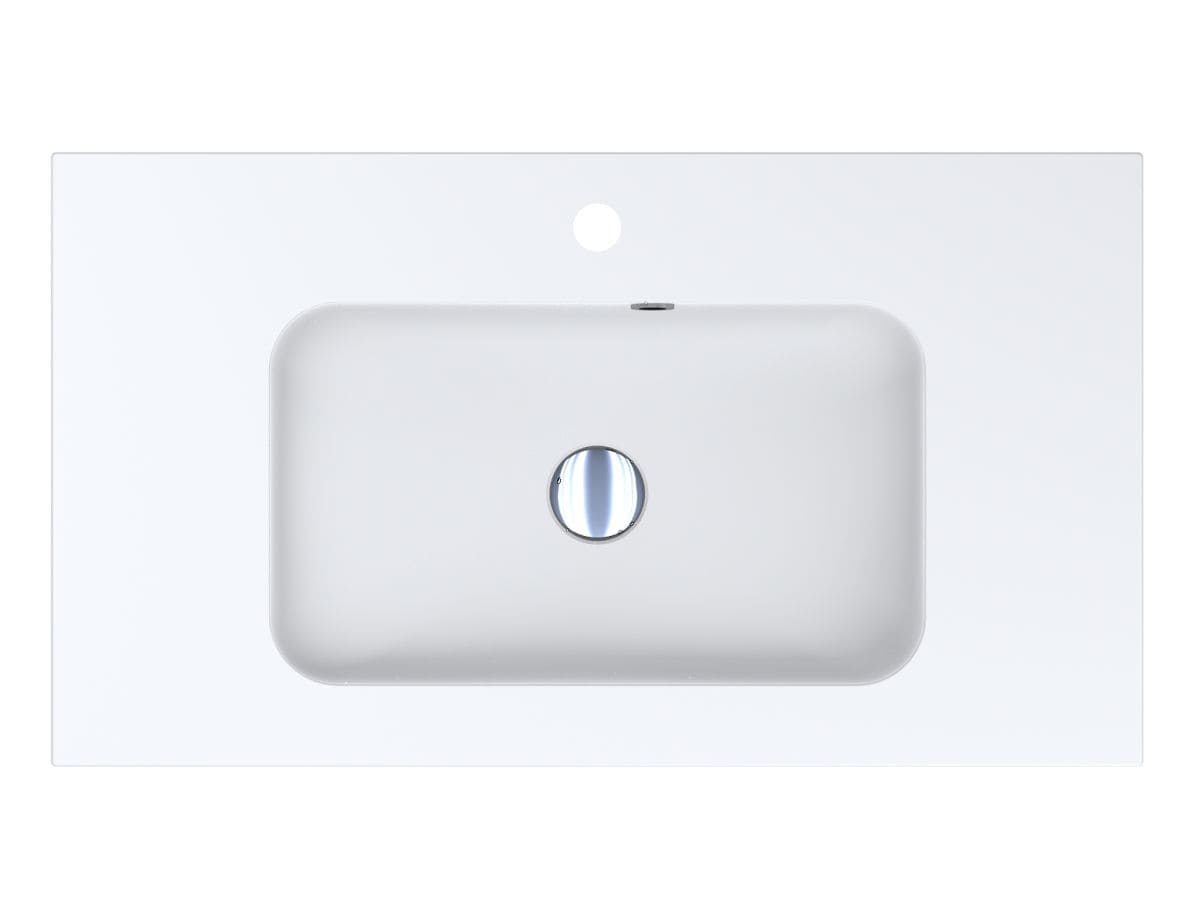 Компактний матовий умивальник DELLA 800 MIRASOFT із прямокутною чашею та крилами середньої ширини - оптимальне рішення для маленької ванної кімнати. Має отвори під змішувач та перелив. Раковина може бути накладена на тумбу, що також передбачає врізний спосіб монтажу.