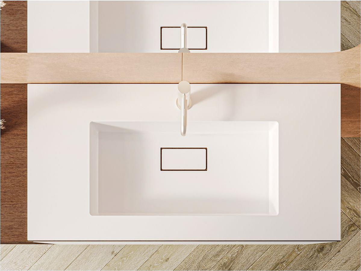 Умивальник з литого мармуру ERICA 1000 - найбільша модель в лінійці, з чашею посередині. Раковина має широкі крила для комфортного розміщення косметики та миючих засобів. Прямі кути чаші привертають увагу, підкреслюючи сучасний стиль умивальника. ERICA 1000 стане оптимальним доповненням великої ванної кімнати. Раковина може бути встановлена на прямокутну тумбу або інстальована у стільницю. Отвір під злив прихований декоративною накладкою.
