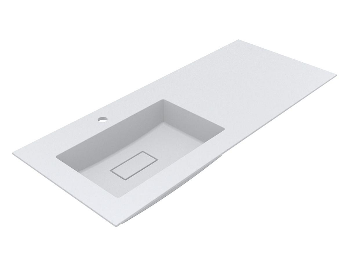 Меблевий матовий умивальник ERICA 1200 L MIRASOFT з чашею ліворуч - сучасний вибір для стильної ванної кімнати. Неординарна чаша з прямими кутами привертає увагу. Широке крило праворуч дозволяє організувати простір для косметики та аксесуарів. Поєднання чаші з крилом-стільницею створює відчуття монолітності та робить зручним догляд за меблями у зоні водних процедур. Раковина має накладний та врізний спосіб монтажу, легко встановлюється на прямокутну тумбу або може бути інстальована у стільницю. Отвір під злив прихований декоративною накладкою.
