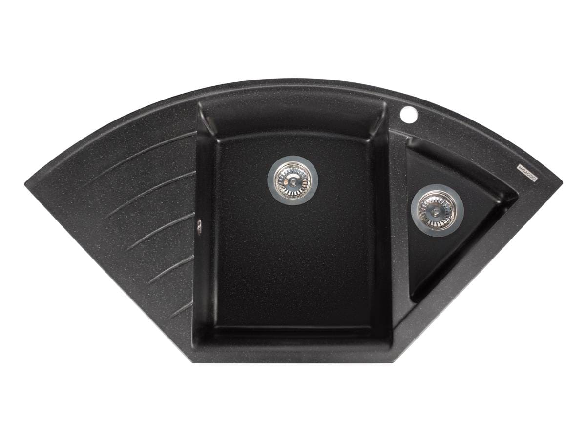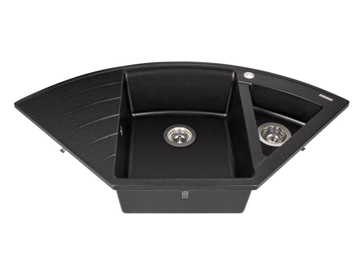 Чорна кутова кухонна мийка з кварцового піску EUROPE - це поєднання комфорту та практичності. Стане чудовим рішенням для невеликої кухні. Ця модель має одну основну чашу та невелику додаткову, а також ліворуч від чаші є крило. Додаткову чашу можна використовувати для миття овочів та фруктів, столових приладів або навіть для розморожування продуктів окремо від всього посуду. Мийка має врізний тип монтажу.