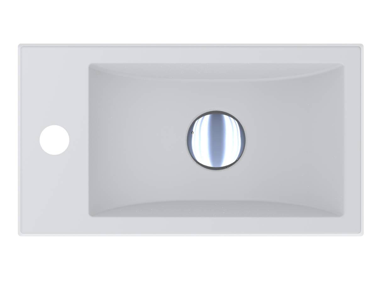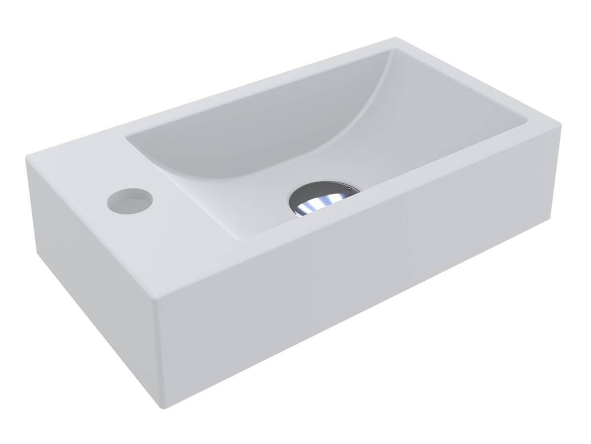 Матовий умивальник FARO MIRASOFT прямокутної форми - функціональний аксесуар для невеликої ванної кімнати в класичному, сучасному або мінімалізм стилі. Оптимальне рішення для організації простору завдяки можливості встановити змішувач на крилі праворуч. Умивальник має накладний тип монтажу.