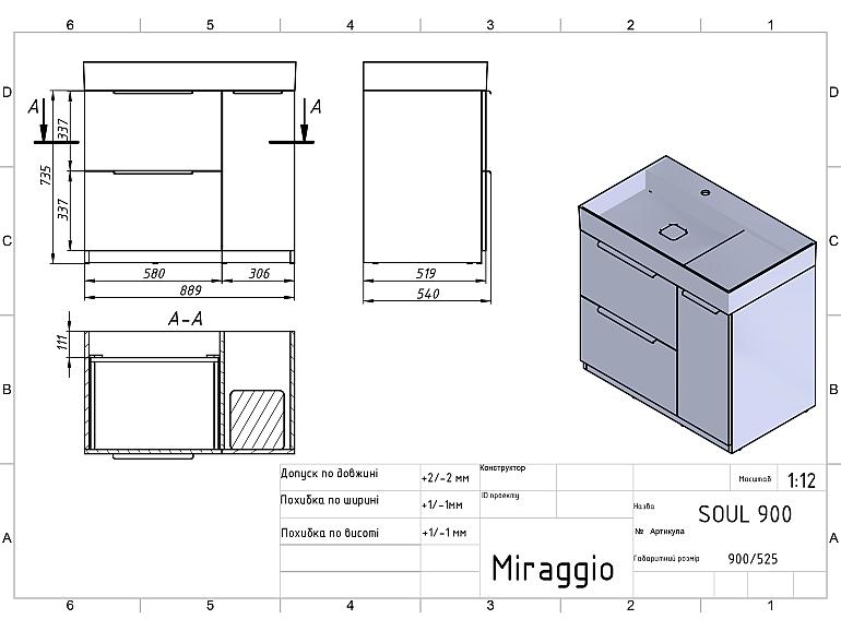 Тумба підлогова ALBA Лагуна з умивальником SOUL 900 47 394 грн