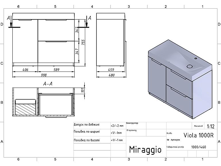 Тумба підлогова ALBA Лагуна з умивальником VIOLA 1000 RТумба підлогова ALBA Лагуна з умивальником VIOLA 1000 RТумба підлогова ALBA Лагуна з умивальником VIOLA 1000 R