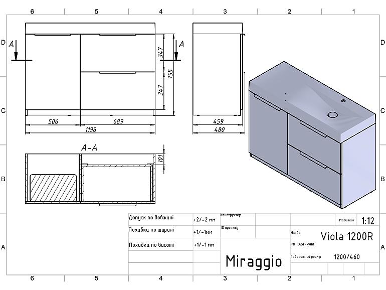 Тумба підлогова ALBA Лагуна з умивальником VIOLA 1200 RТумба підлогова ALBA Лагуна з умивальником VIOLA 1200 RТумба підлогова ALBA Лагуна з умивальником VIOLA 1200 R