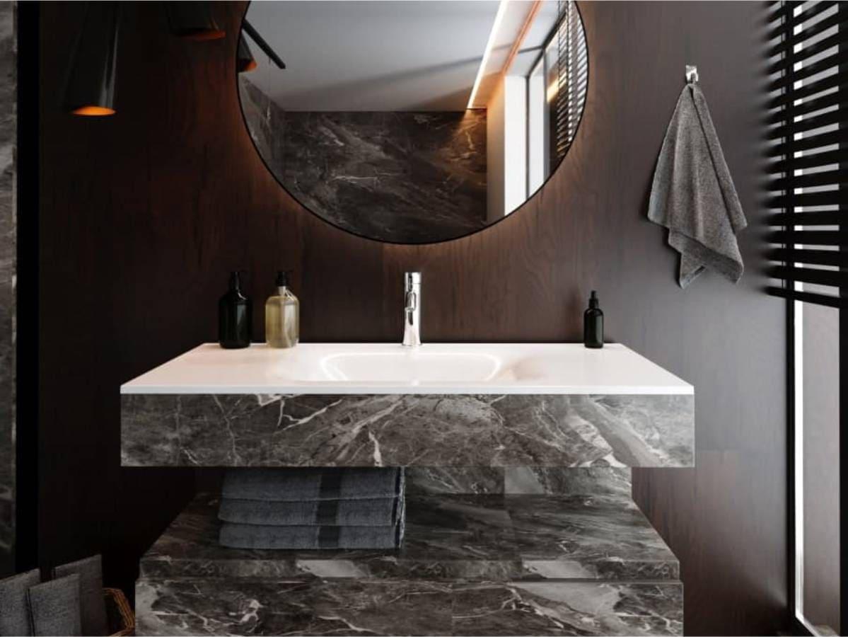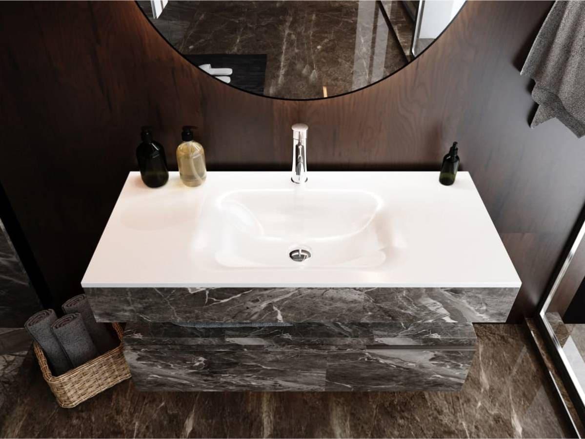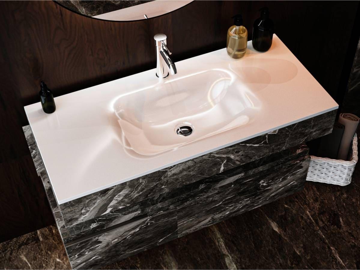 Меблевий умивальник із литого мармуру JESSEL 1000 - відмінне рішення для ванної кімнати. Плавні лінії прямокутної чаші перешкоджають розбризкуванню води, широкі крила дозволяють зручно розмістити гігієнічні засоби. Умивальник має кілька типів монтажу - накладний та врізний.