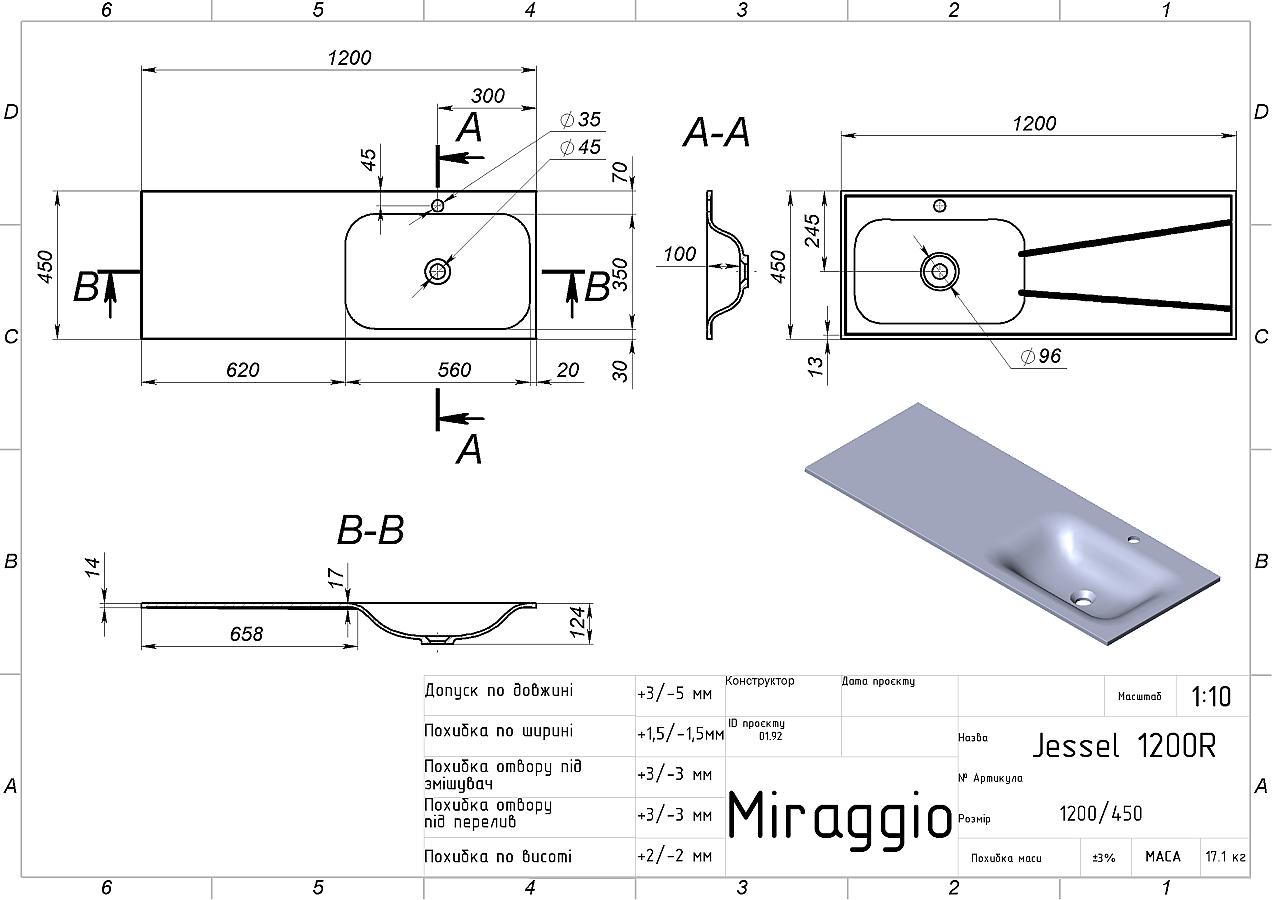 Заводський стандарт моделі JESSEL 1200 R передбачає отвір під змішувач. Опціонально можна замовити умивальник без отвору. Додатково донний клапан клік-клак можна замовити на сайті.