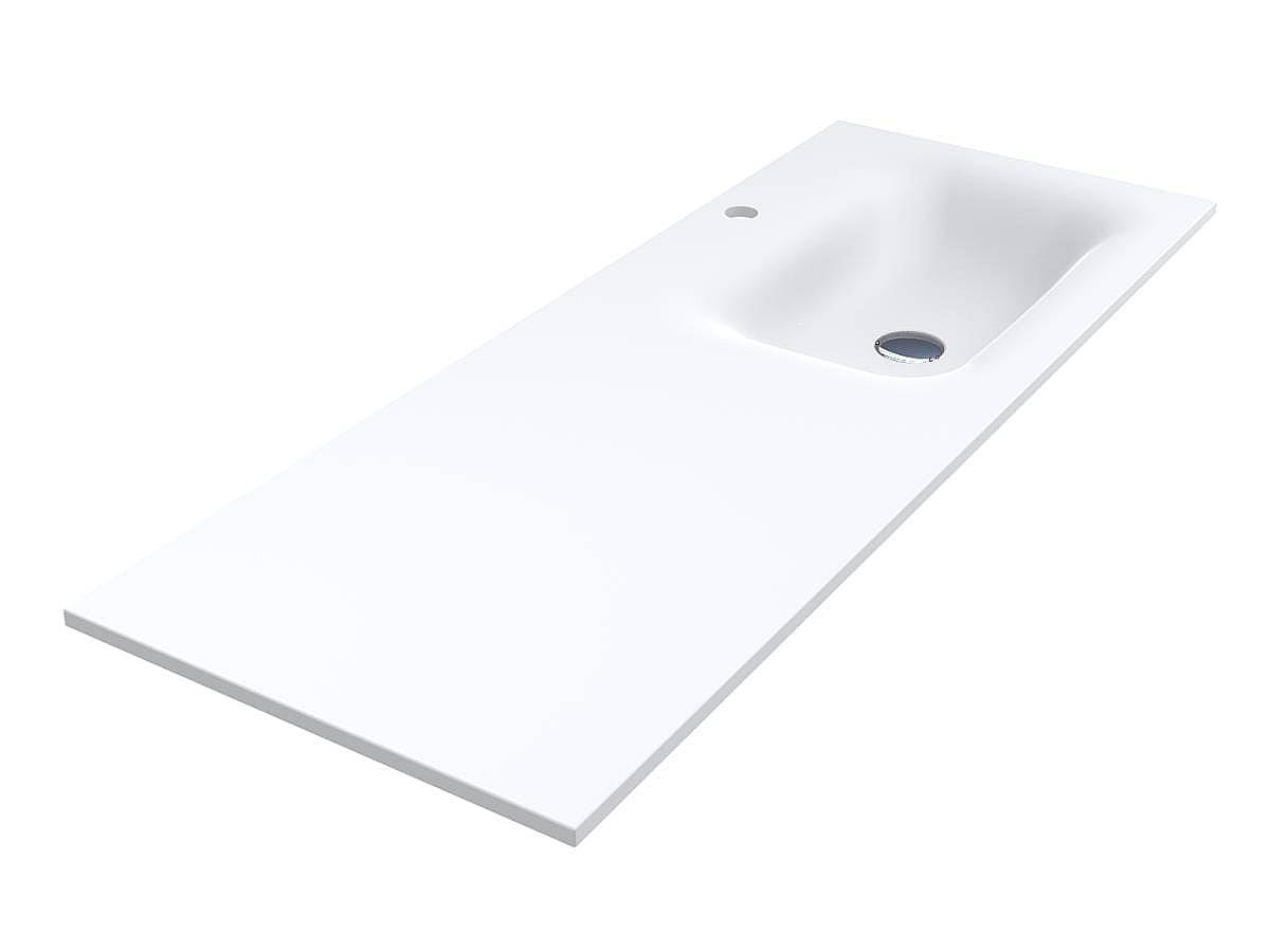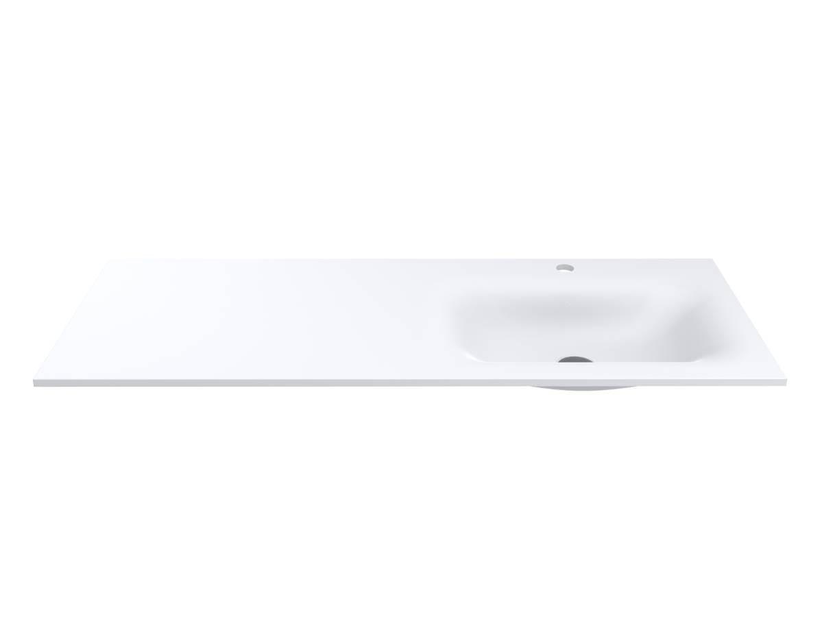 Меблевий умивальник JESSEL 1200 R MIRASOFT з крилом зліва від чаші – оптимальне рішення, якщо локація ванної кімнати вимагає змістити раковину у певний бік. Плавні лінії чаші перешкоджають розбризкуванню води, широке крило дозволяє зручно розмістити гігієнічні засоби. Умивальник має кілька типів монтажу - накладний та врізний.