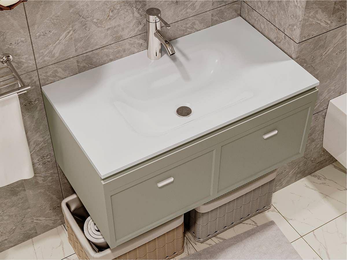Прямокутний умивальник із литого мармуру JESSEL 800 для тумби – оптимальне рішення для невеликої ванної кімнати. Чашу формують плавні лінії та вигини, а на крилах зручно розмістити косметичні засоби. Умивальник має кілька варіантів монтажу - накладний та врізний.
