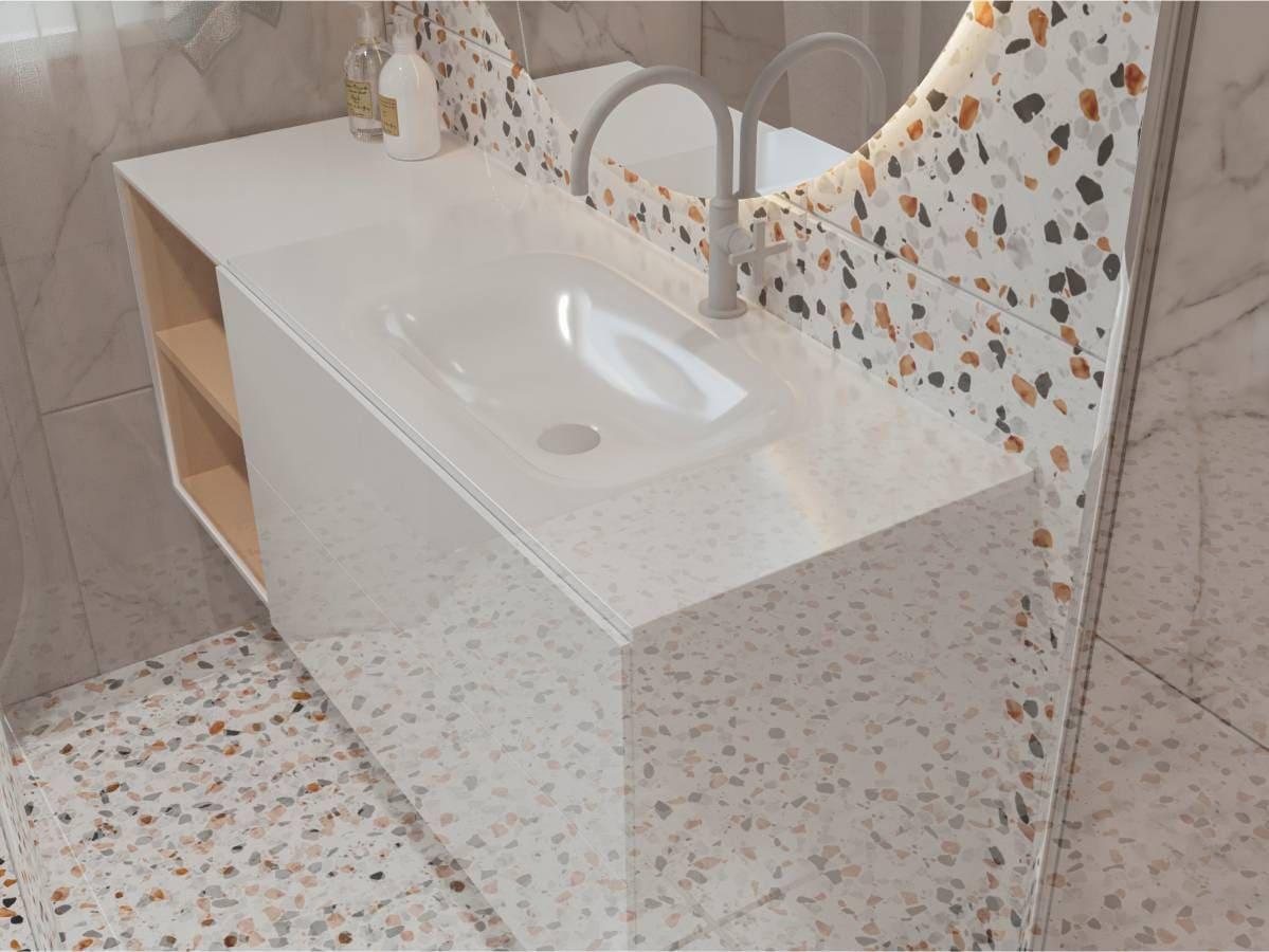 Прямокутний умивальник із литого мармуру JESSEL 900 на тумбу – ідеально доповнить дизайн ванної кімнати. Плавні лінії чаші перешкоджають розбризкуванню води, широкі крила дозволяють зручно розмістити гігієнічні засоби. Умивальник має кілька варіантів монтажу - накладний та врізний.