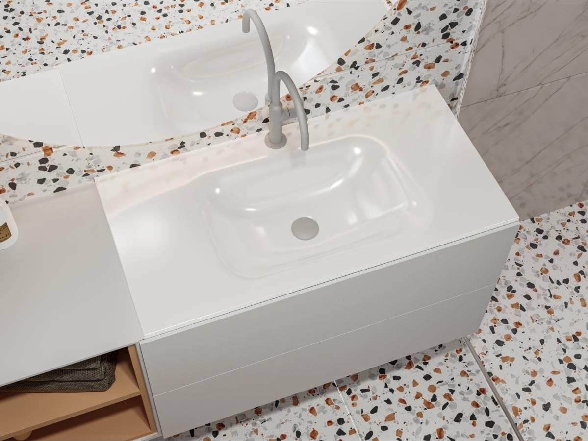 Умивальник JESSEL 900 також може бути виготовлений у технологіях MIRAMARBLE MATT, MIRASOFT та MIRASTONE (в сірому або чорному кольорі).
