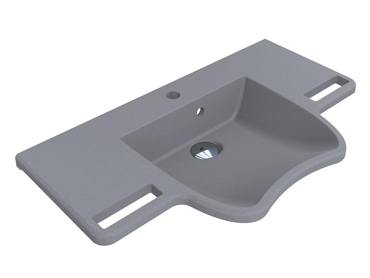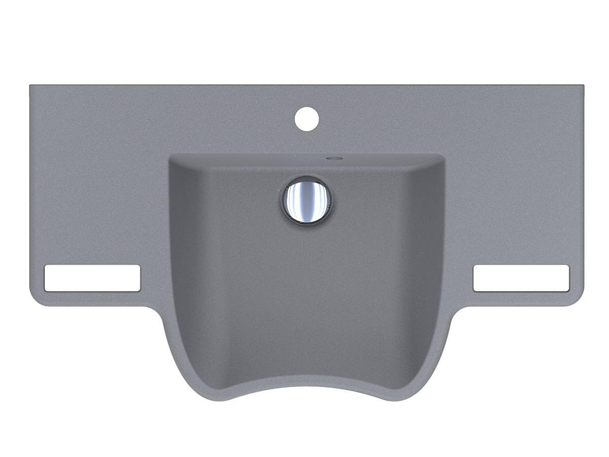 Сірий умивальник із кварцового піску KRAKOW створений у максимально ергономічному дизайні. Подовжена до користувача поглиблена раковина, ручки, за які можна триматися або вішати рушники, широкі крила-полочки для косметичних засобів. KRAKOW - чудове рішення для громадських санвузлів або кімнат для людей з інвалідністю. Умивальник має підвісний тип монтажу.