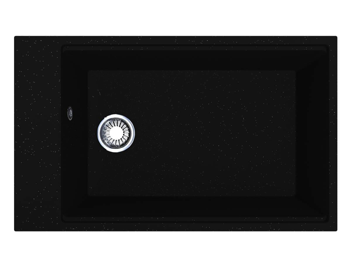 Чорна кухонна мийка з кварцового піску LAGOON 760 - це сучасна велика раковина з прямими лініями та формою. У ній зручно мити тарілки та каструлі, листи та сковорідки. Мийка має декілька типів монтажу - врізний та під стільницю.