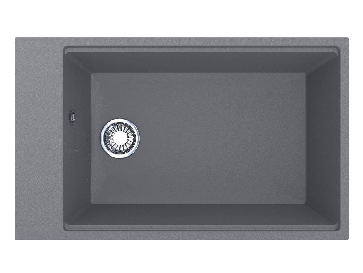 Сіра кухонна мийка з кварцового піску LAGOON 760 - це сучасна велика раковина з прямими лініями та формою. У ній зручно мити тарілки та каструлі, листи та сковорідки. Мийка має декілька типів монтажу - врізний та під стільницю.