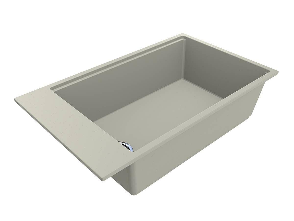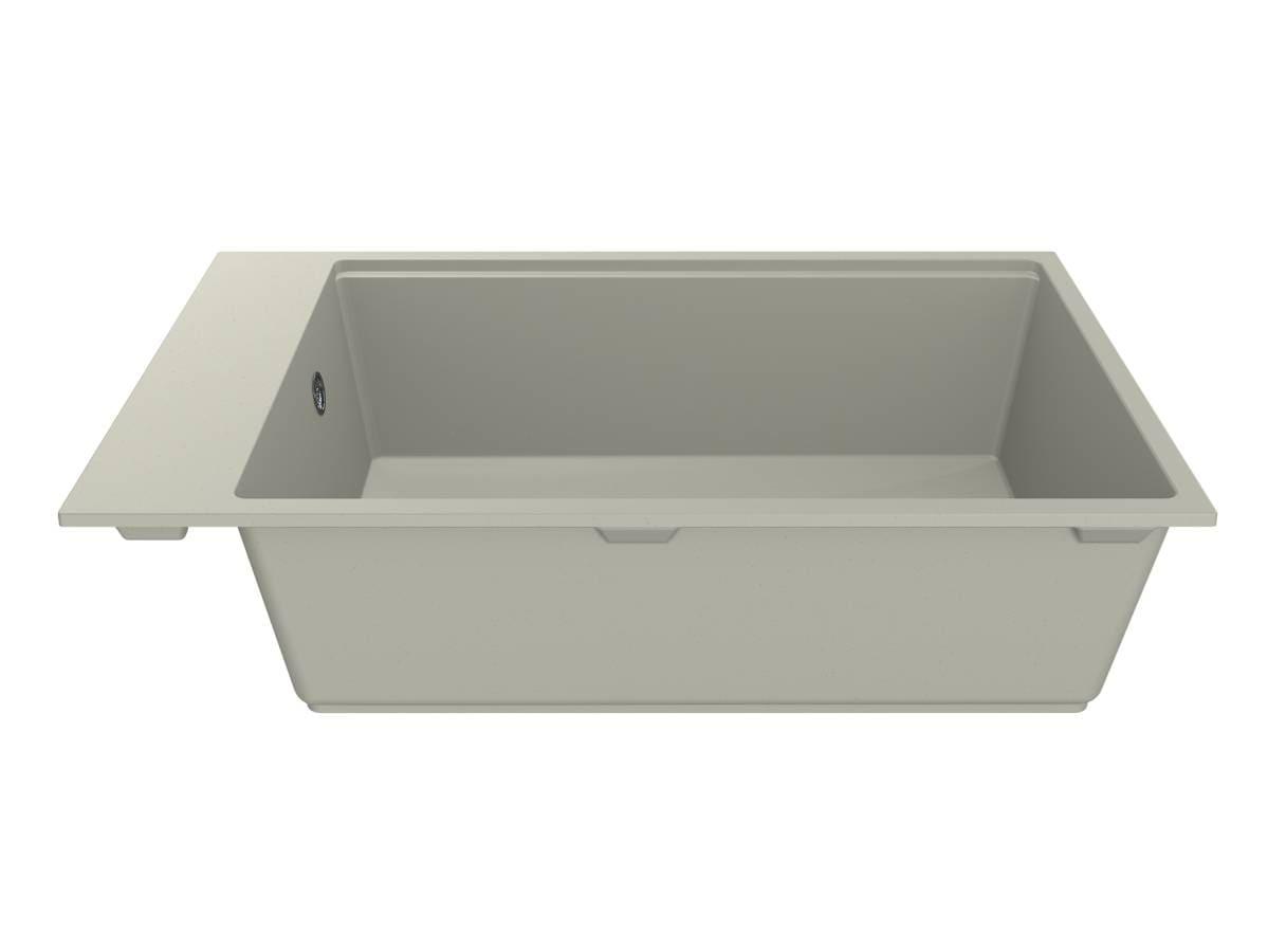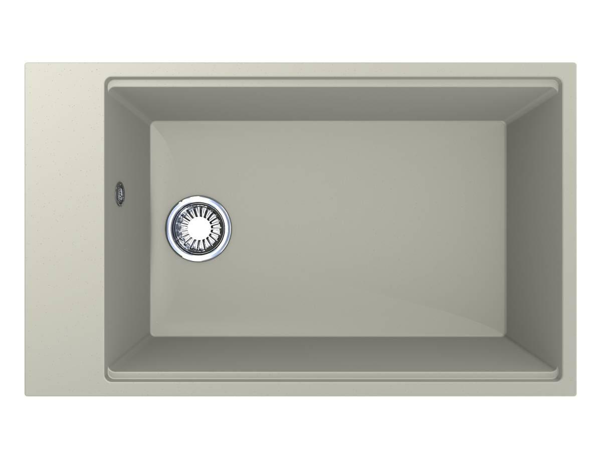 Світла кухонна мийка з кварцового піску LAGOON 760 кольору жасмин - це сучасна велика раковина з прямими лініями та формою. У ній зручно мити тарілки та каструлі, листи та сковорідки. Мийка має декілька типів монтажу - врізний та під стільницю.