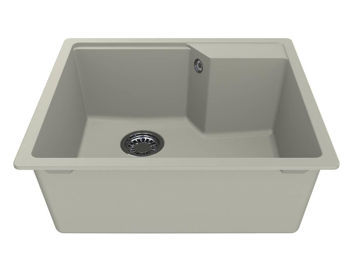 Прямокутна кухонна мийка LISA з кварцового піску кольору жасмин - це ідеальне рішення для середніх і малих кухонь. Модель з однією основною чашею, чудово підійде для сучасного інтер'єру. Мийка має кілька типів монтажу - врізний та під стільницю.