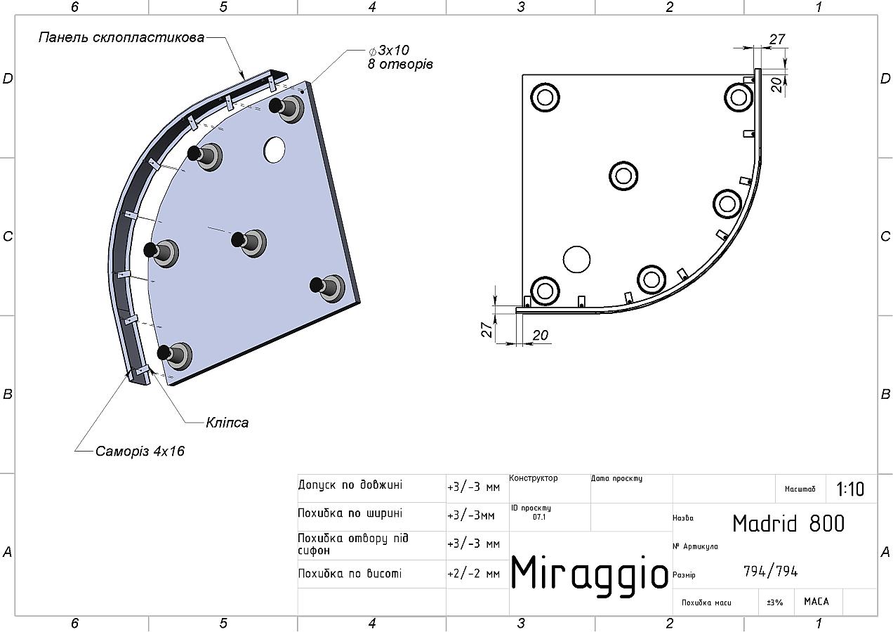 Madrid 800 дуже легко монтувати, він невисокий та практичний. Душовий піддон спроєктовано так, що вода не затримується на ньому і стікає точно у каналізацію.