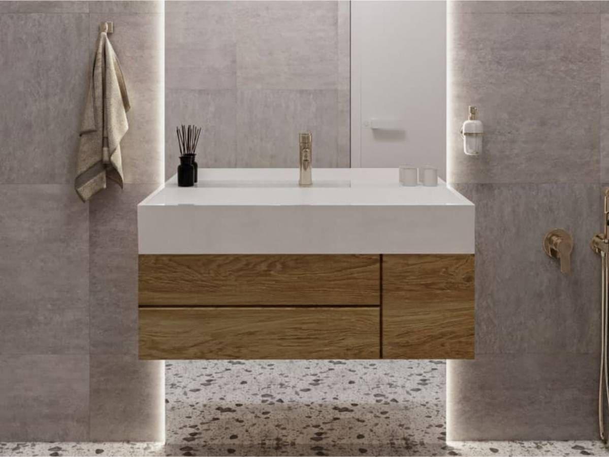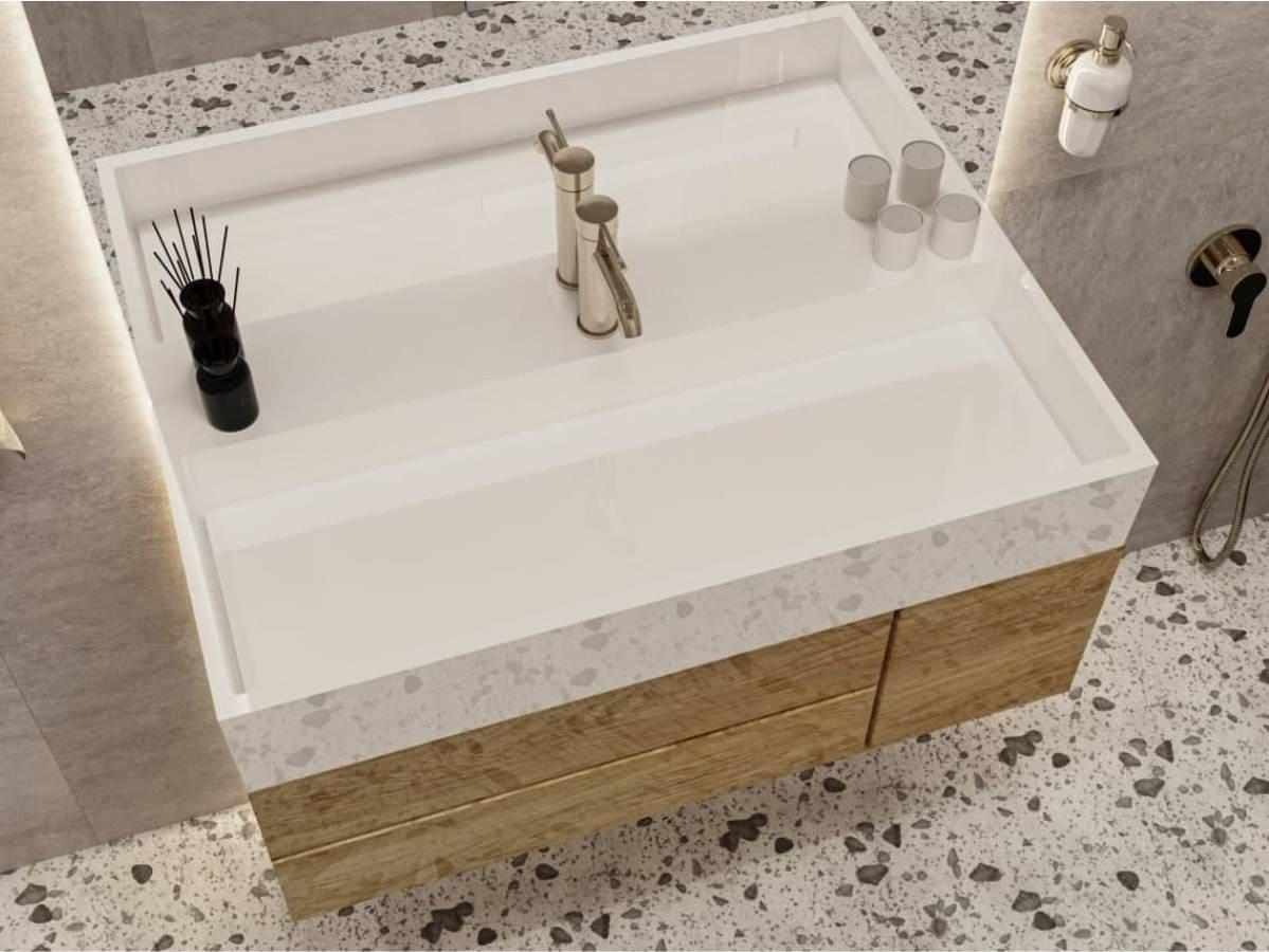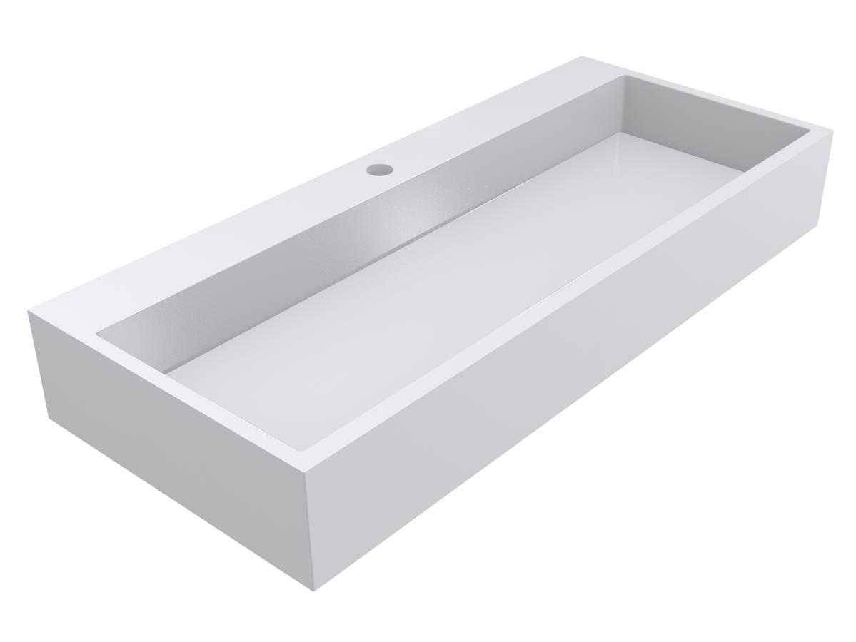 Метровий умивальник з литого мармуру MARES 1000 – це поєднання мінімалізму та чітких ліній. Прямокутний бокс із вертикальними стінками, широкий борт-підставка під змішувач та косметичні засоби, накладка на злив на всю площину дна. Модель ідеально підкреслить класичний стиль ванної кімнати. Умивальник має врізний тип монтажу.