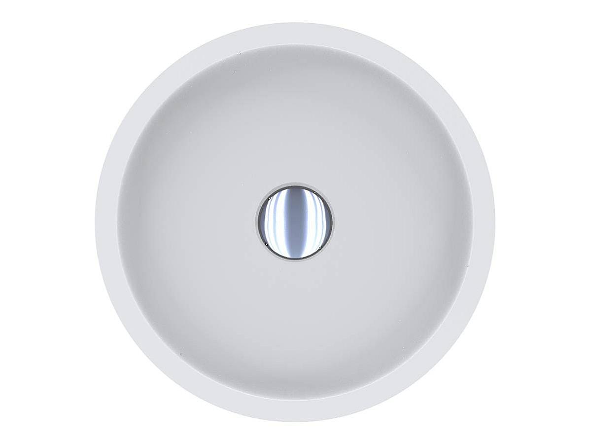 Компактний матовий круглий умивальник MARK 375 MIRASOFT - привабливе та функціональне рішення для маленької ванної кімнати. Передбачає окремостоячий або настінний змішувач. Має накладний тип монтажу.