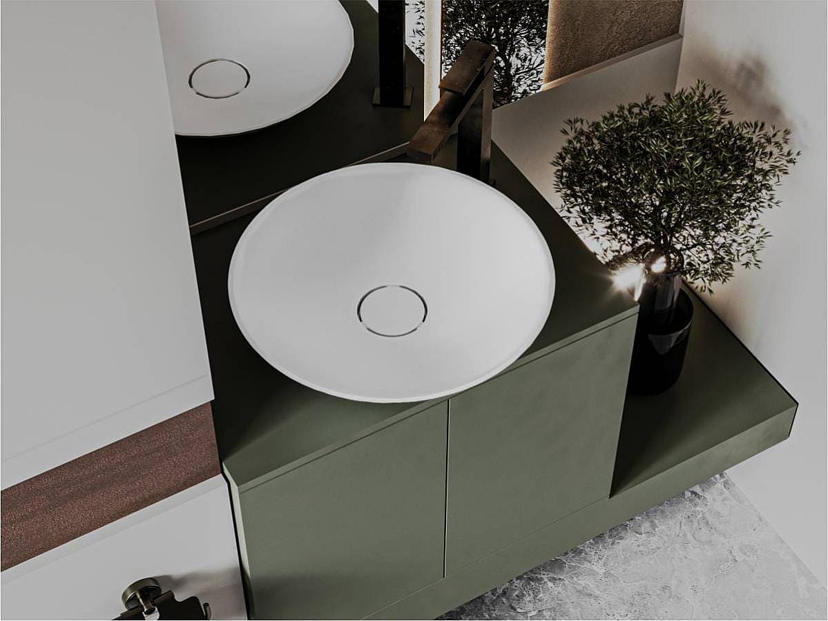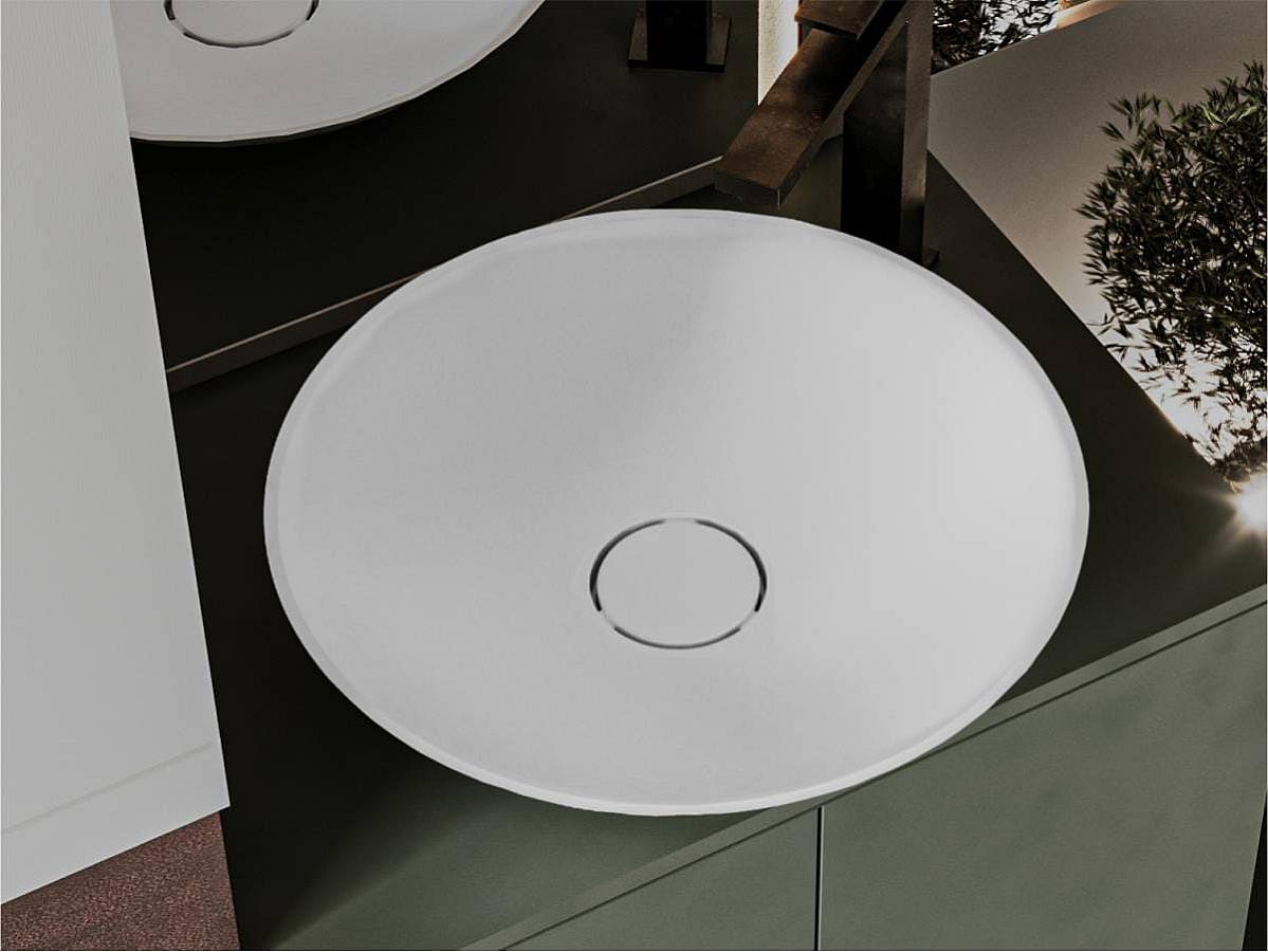 Охайна кругла раковина з литого мармуру MARS нагадує глибоку таріль для фруктів. Умивальник стане легким акцентом у класичному чи мінімалістичному дизайні ванної кімнати. Ідеальним доповненням раковини буде окремостоячий або настінний змішувач. Має накладний тип монтажу.