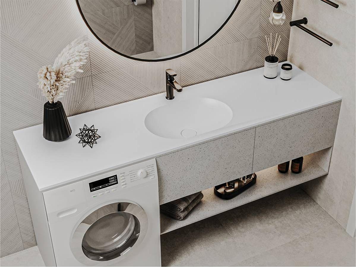 Умивальник із литого мармуру NEW YORK 1850 - найширший в лінійці MIRAGGIO. Великі крила в якості стільниці обабіч овальної чаші посередині роблять його найбільш практичним рішенням для ванної кімнати. Під крилом зручно розмістити пральну машинку чи комод. Має накладний/врізний тип монтажу. Отвір під злив приховано декоративною накладкою.