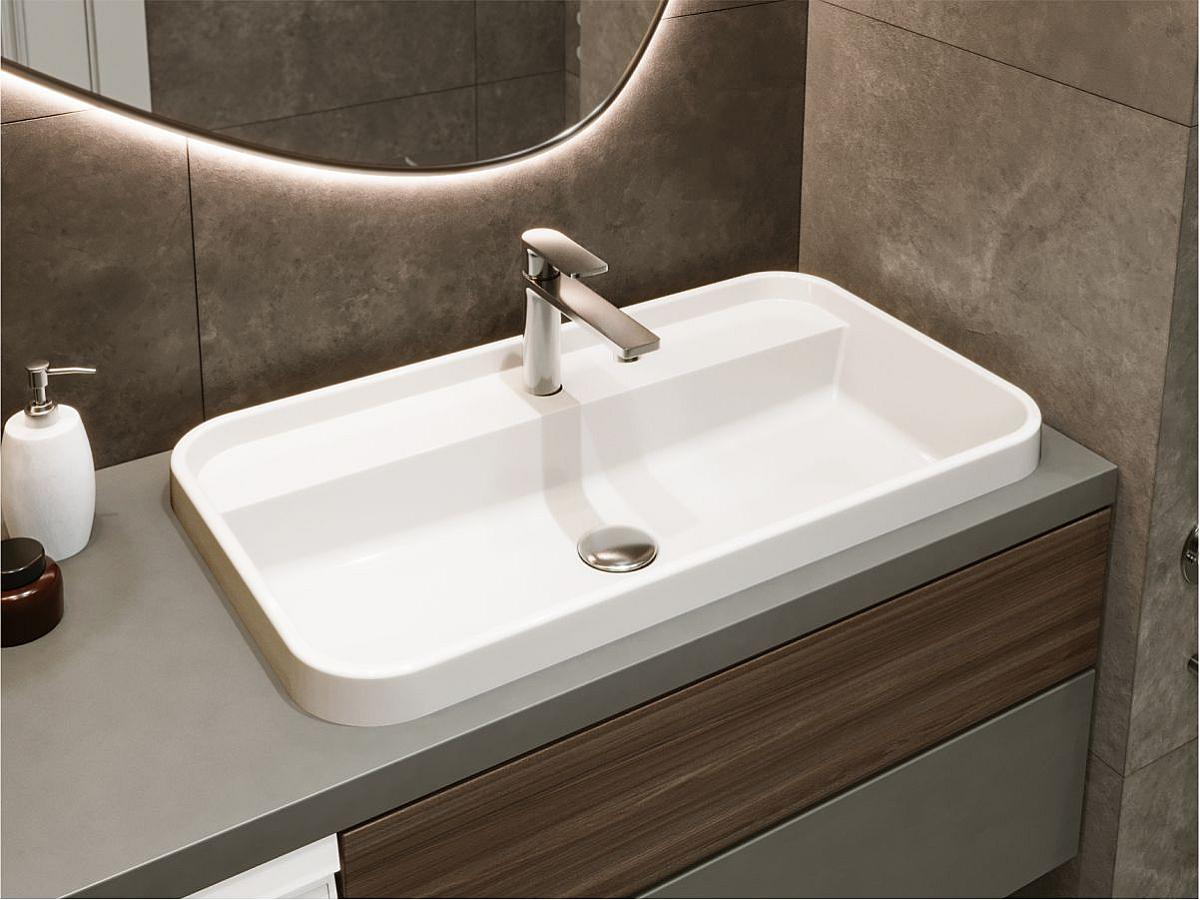 Умивальник врізний Ocean 700 MIRAGGIO виготовлений за технологією Miramarble, поверхня біла глянцева