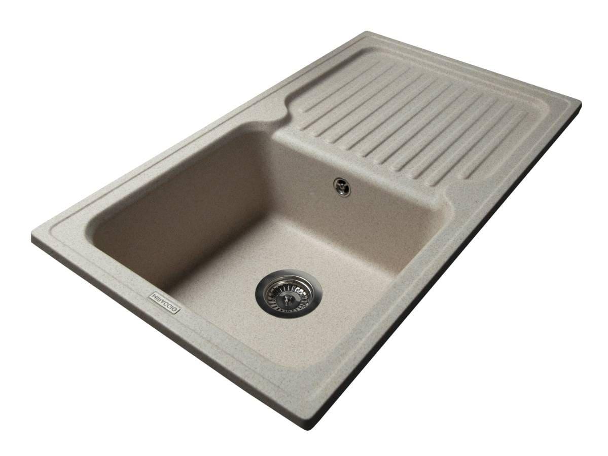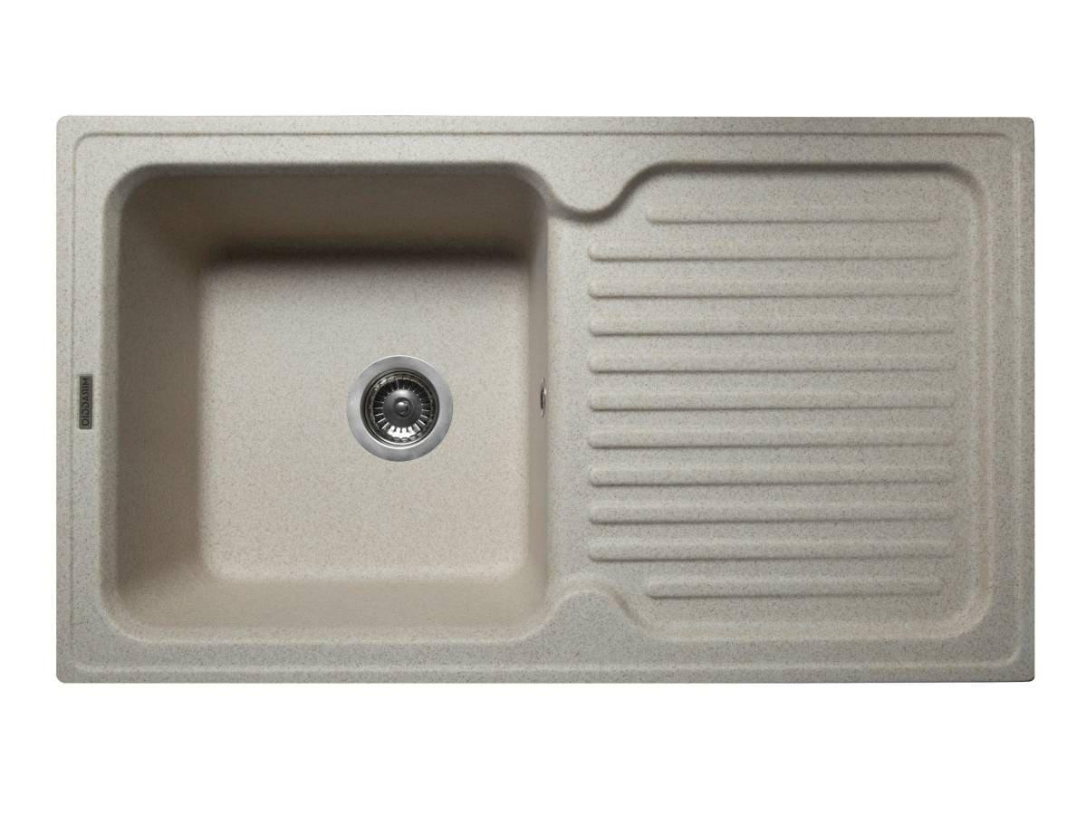 Прямокутна кухонна мийка з кварцового піску ORLEAN пісочного кольору має практичний дизайн із глибокою чашею та ребристим неслизьким крилом для посуду. Мийка має врізний тип монтажу.