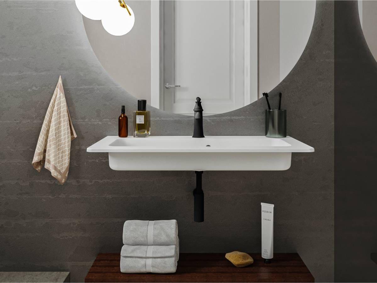 Умивальник ROSTRIKS TRES також може бути виготовлений у технологіях MIRAMARBLE MATT та MIRASOFT.
