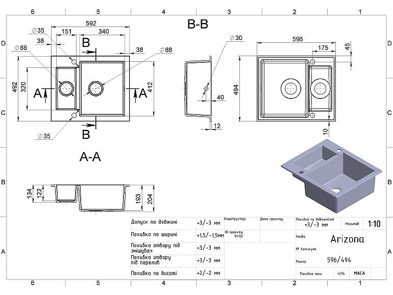 | Кухонна мийка ARIZONA WHITE з 2 отворами під змішувач | 7 260 грн |