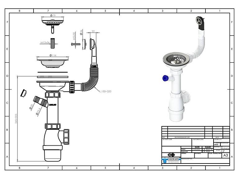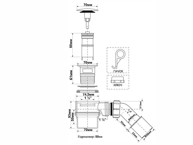 | Сифон для ванны, d52/ d32 мм |