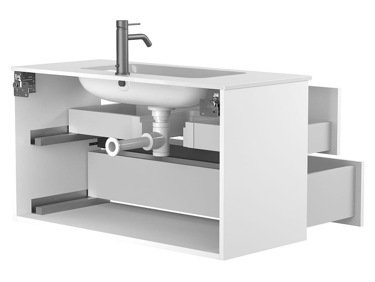 *Внимание! Тумба поставляется в комплекте с раковиной, однако сифон и смеситель не входят в базовую комплектацию — их необходимо приобрести отдельно. На изображении эти элементы добавлены для полного визуального представления внешнего вида изделия.