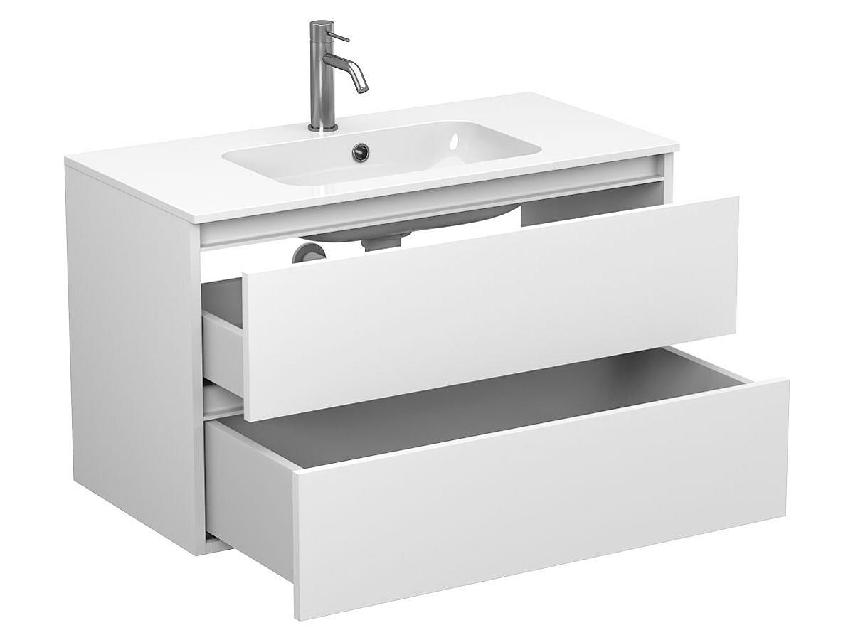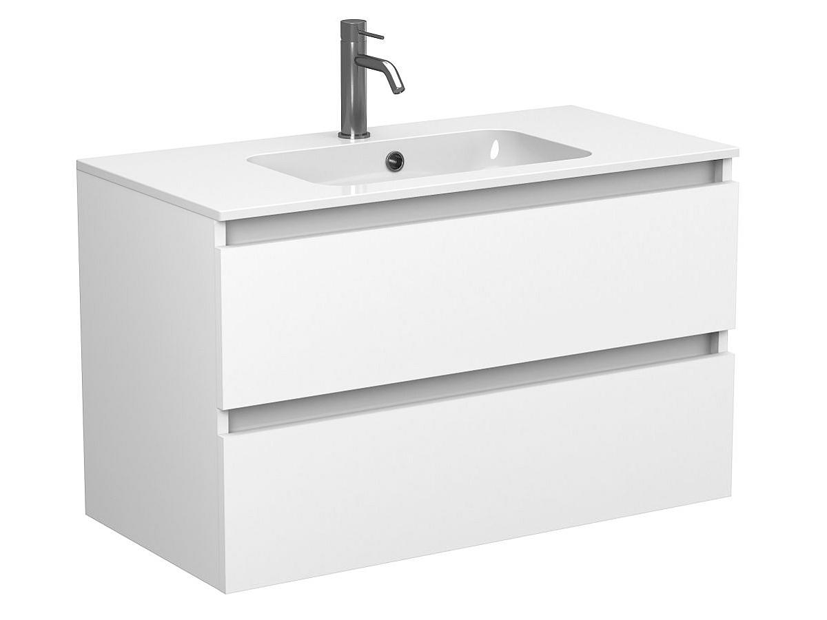 Тумба подвесная NATURA белая матовая с умывальником DELLA 900
