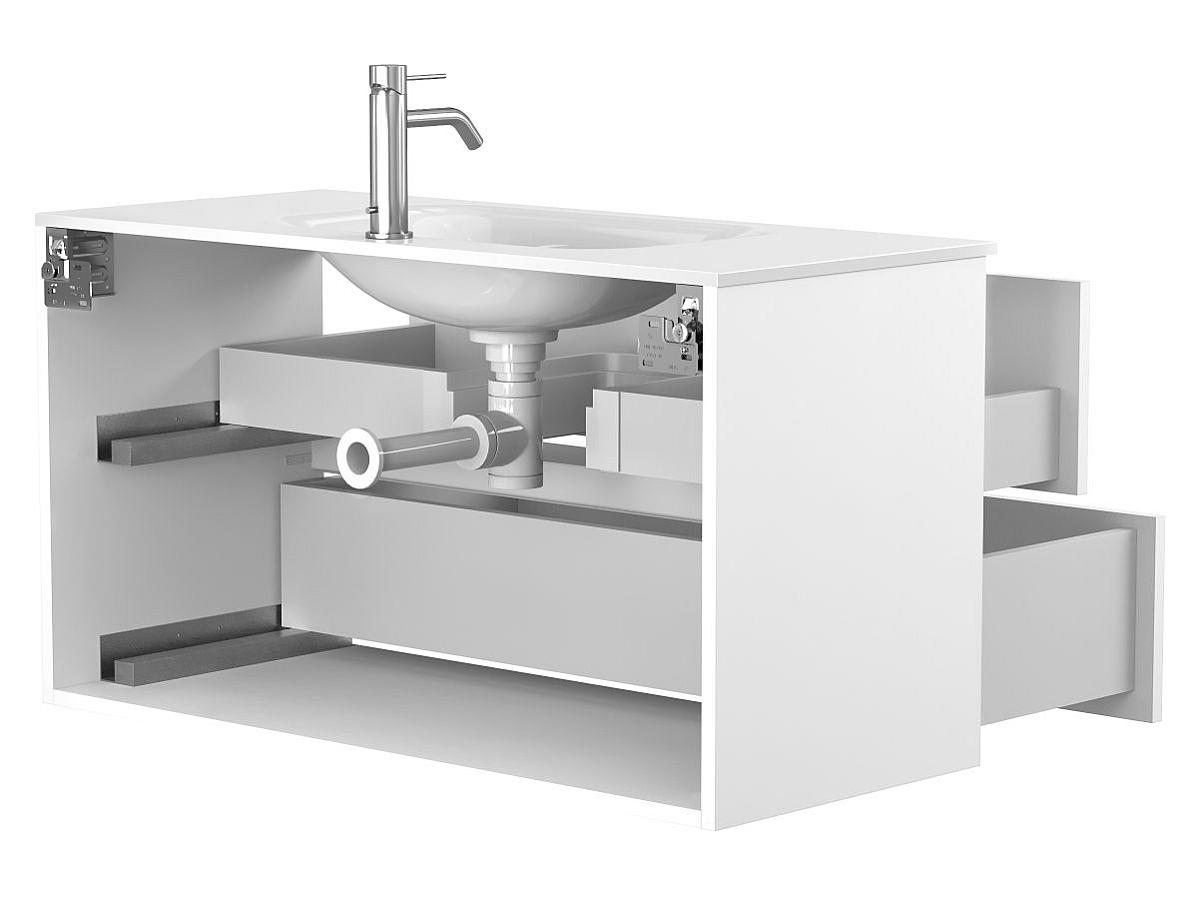 *Внимание! Тумба поставляется в комплекте с раковиной, однако сифон и смеситель не входят в базовую комплектацию — их необходимо приобрести отдельно. На изображении эти элементы добавлены для полного визуального представления внешнего вида изделия.
