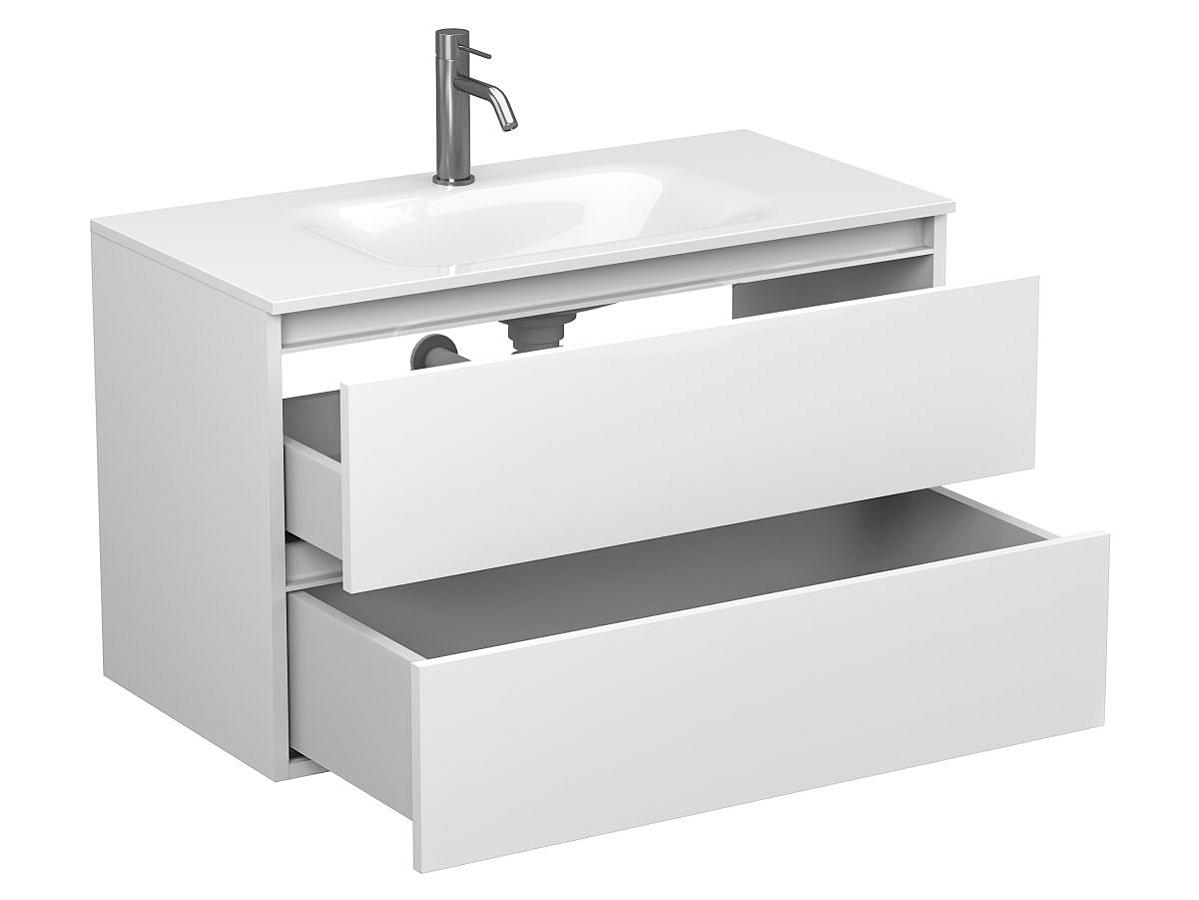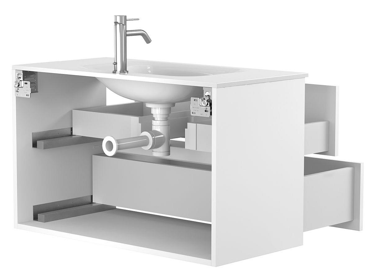 *Внимание! Тумба поставляется в комплекте с раковиной, однако сифон и смеситель не входят в базовую комплектацию — их необходимо приобрести отдельно. На изображении эти элементы добавлены для полного визуального представления внешнего вида изделия.