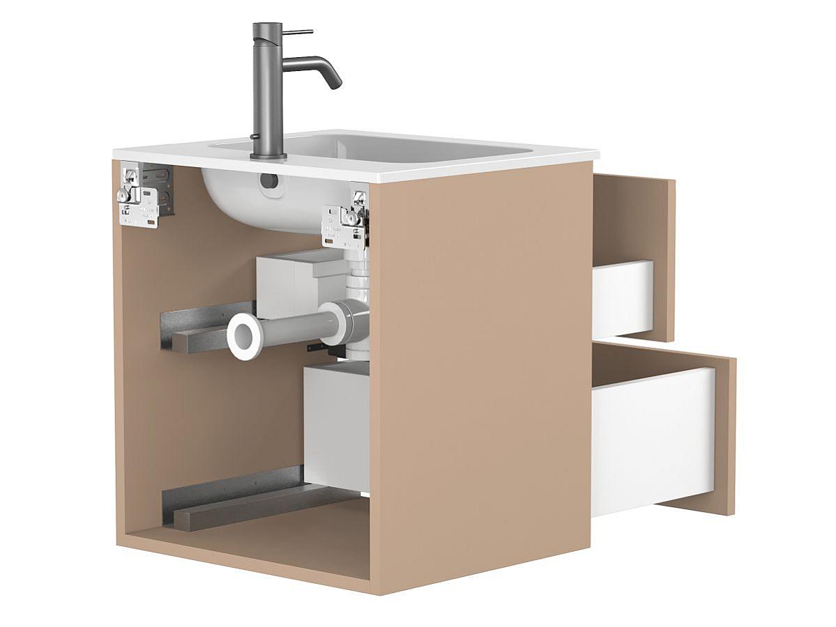 *Внимание! Тумба поставляется в комплекте с раковиной, однако сифон и смеситель не входят в базовую комплектацию — их необходимо приобрести отдельно. На изображении эти элементы добавлены для полного визуального представления внешнего вида изделия.