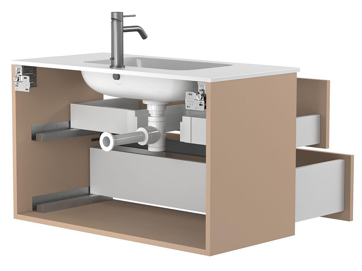*Внимание! Тумба поставляется в комплекте с раковиной, однако сифон и смеситель не входят в базовую комплектацию — их необходимо приобрести отдельно. На изображении эти элементы добавлены для полного визуального представления внешнего вида изделия.