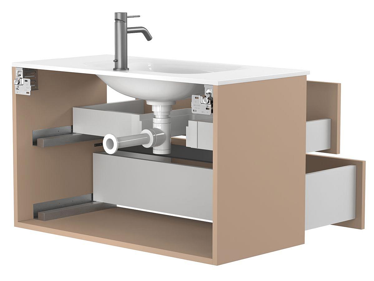 Тумба подвесная NATURA капучино, с умывальником JESSEL 900