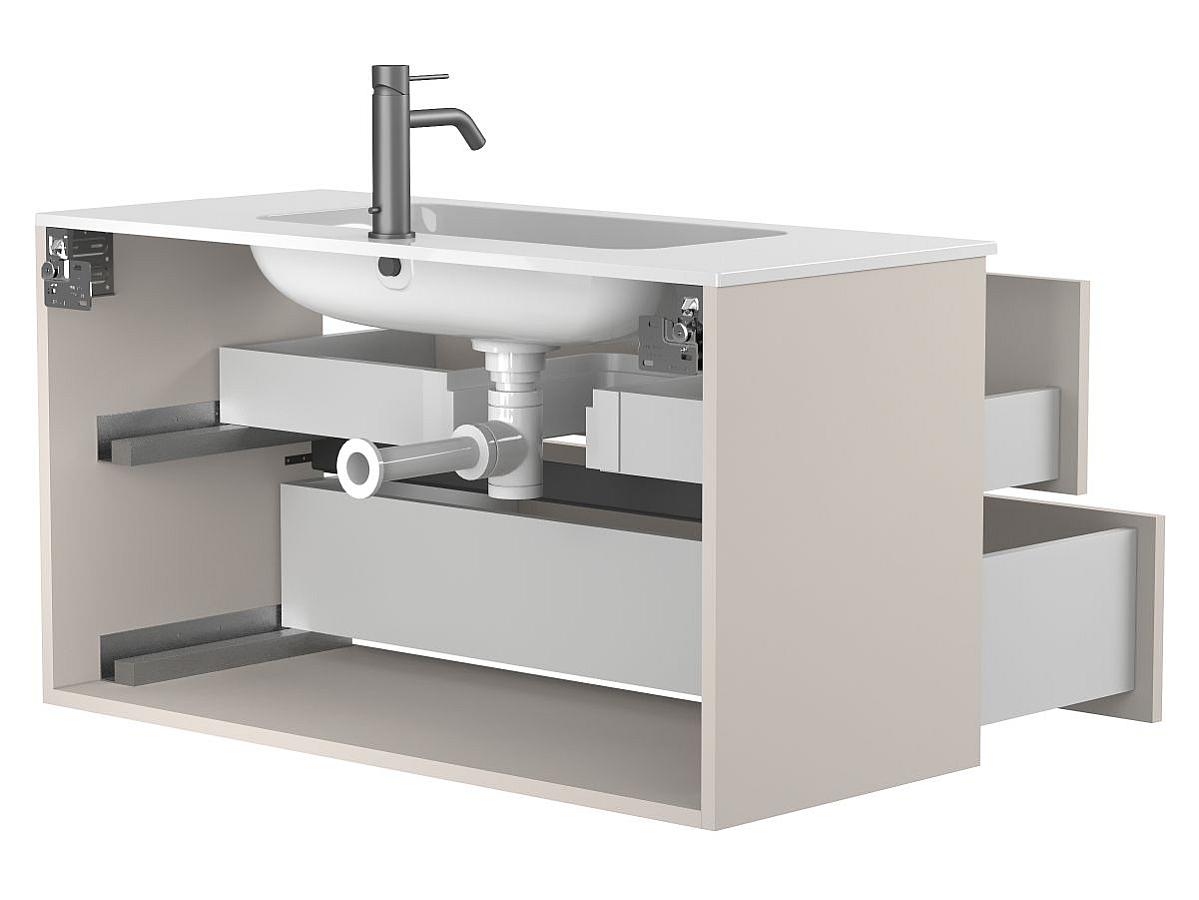 *Внимание! Тумба поставляется в комплекте с раковиной, однако сифон и смеситель не входят в базовую комплектацию — их необходимо приобрести отдельно. На изображении эти элементы добавлены для полного визуального представления внешнего вида изделия.