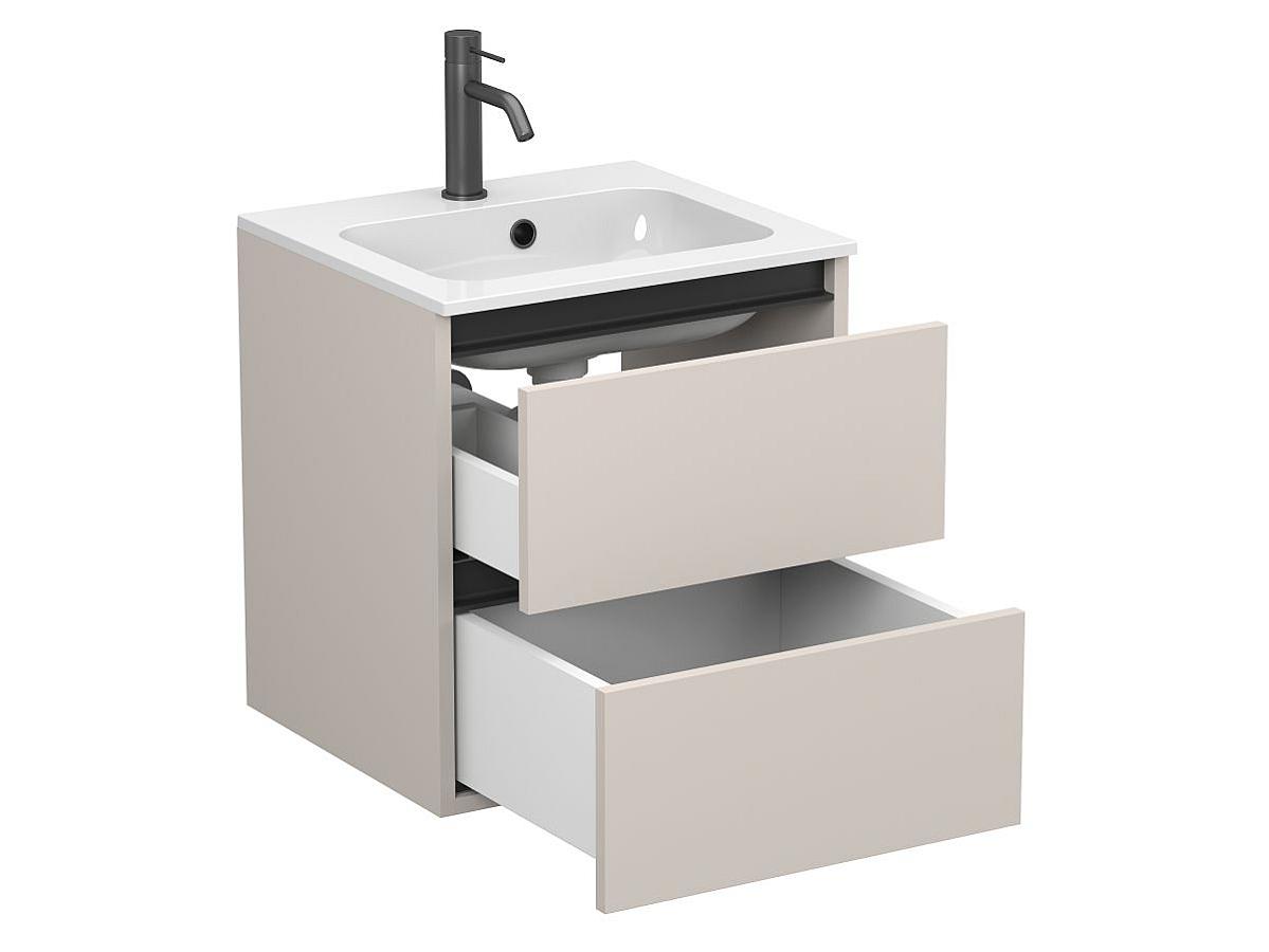 *Внимание! Тумба поставляется в комплекте с раковиной, однако сифон и смеситель не входят в базовую комплектацию — их необходимо приобрести отдельно. На изображении эти элементы добавлены для полного визуального представления внешнего вида изделия.