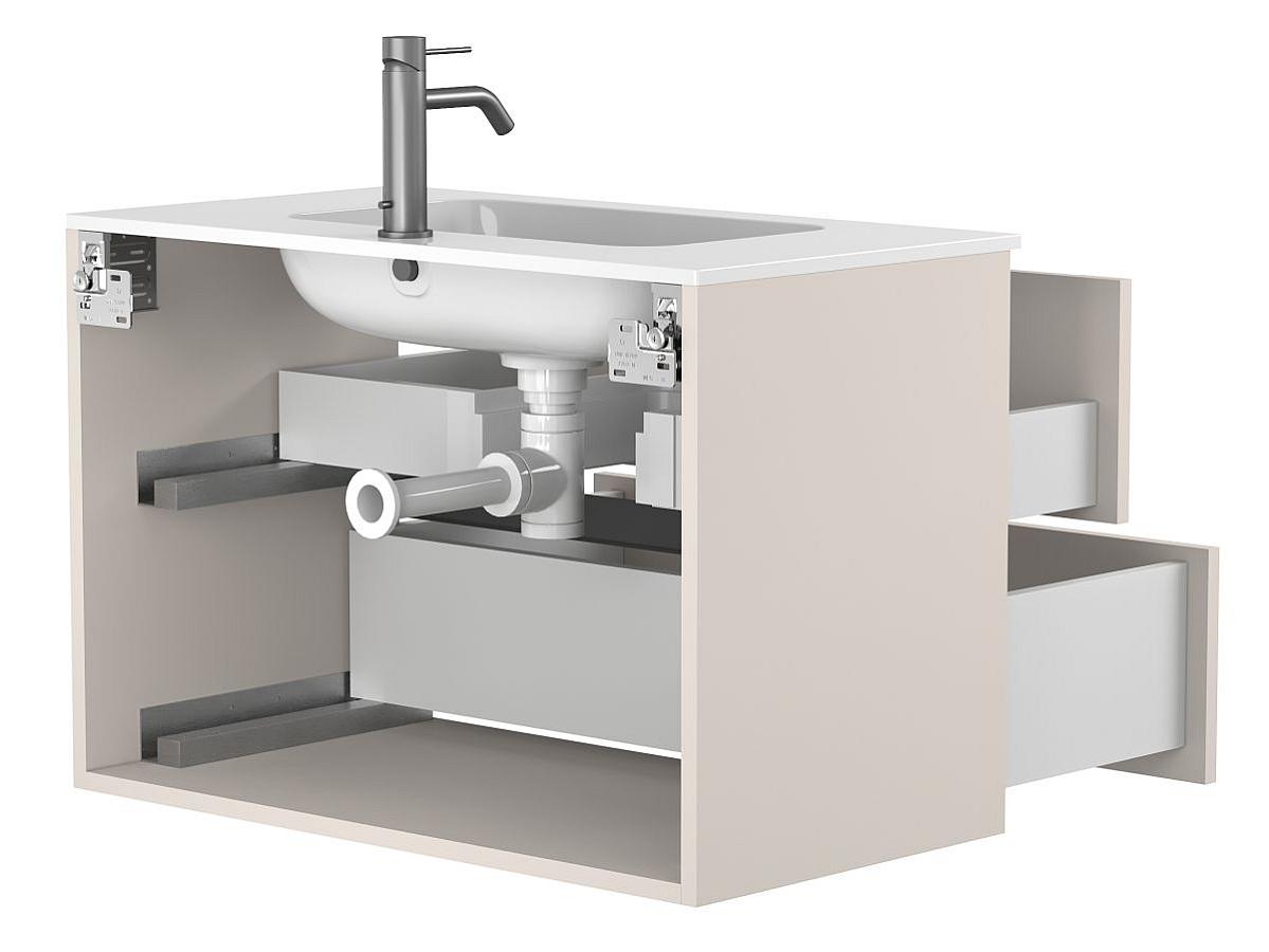 *Внимание! Тумба поставляется в комплекте с раковиной, однако сифон и смеситель не входят в базовую комплектацию — их необходимо приобрести отдельно. На изображении эти элементы добавлены для полного визуального представления внешнего вида изделия.