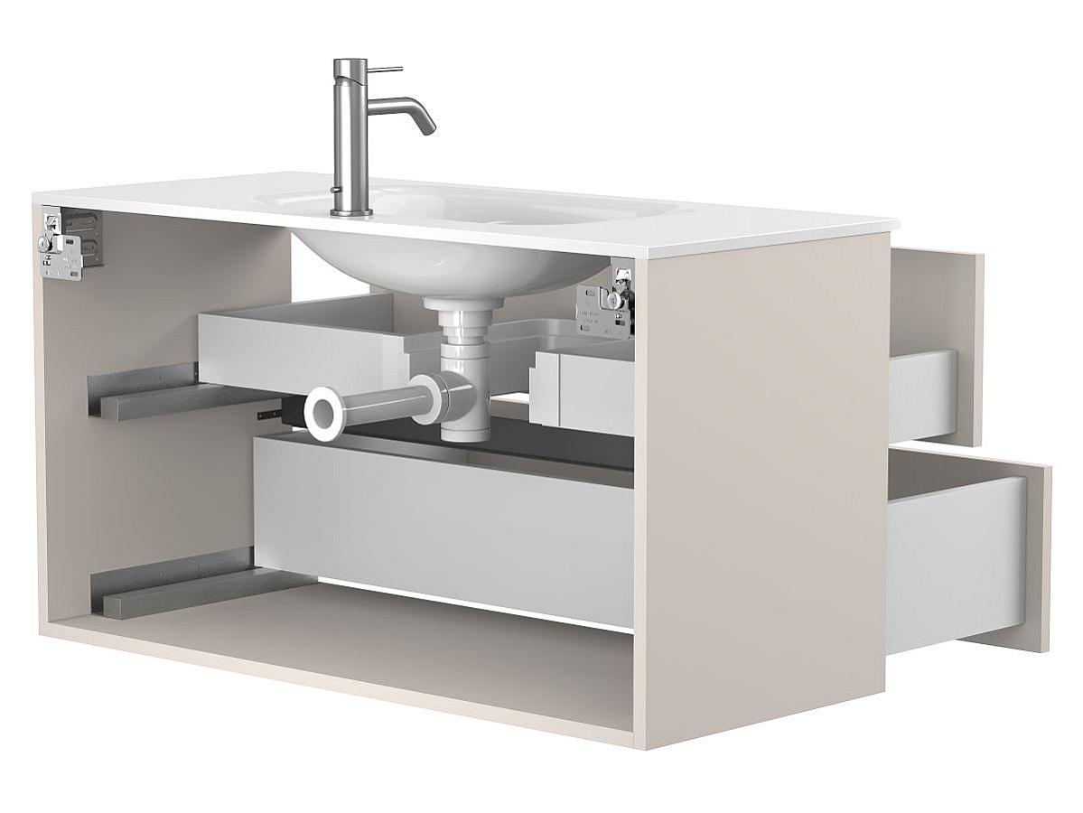 Характеристики Тумба подвесная NATURA кашемир, ДСП с умывальником JESSEL 1000